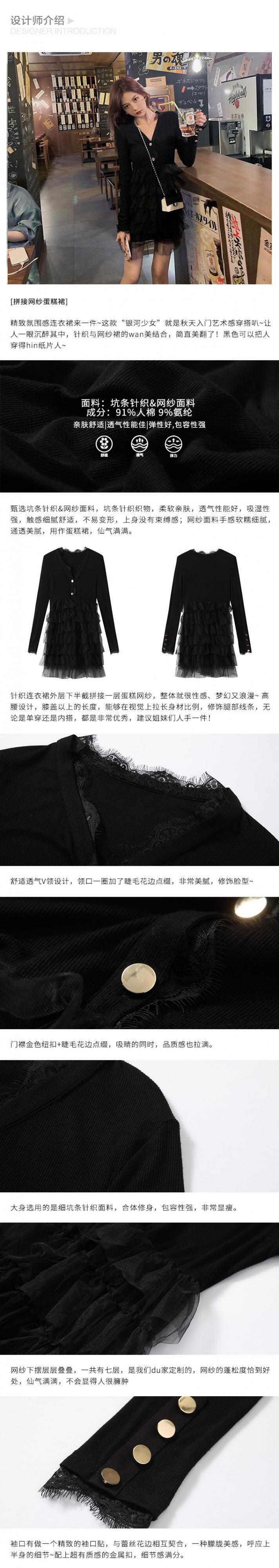シスターナンシーニットVネックドレス女性の2021年春秋ブラック薄いメッシュケーキスカート s2812111878526691