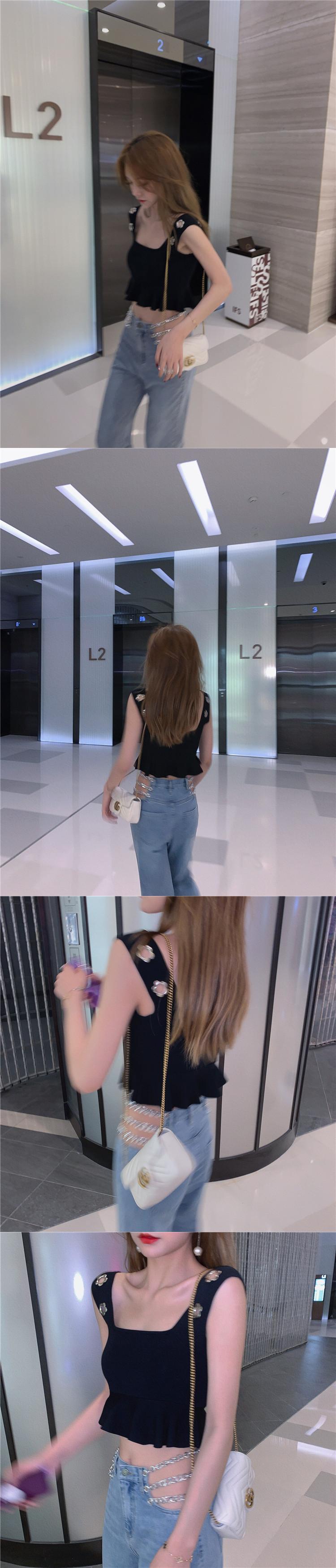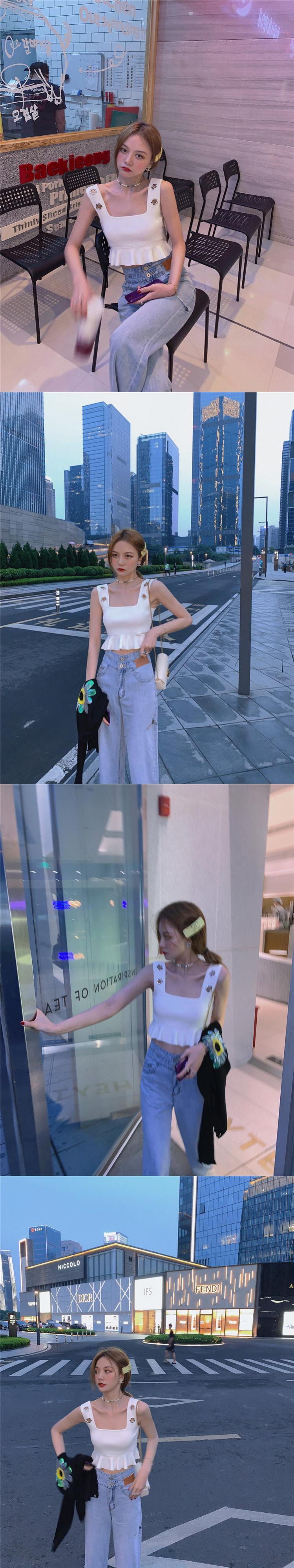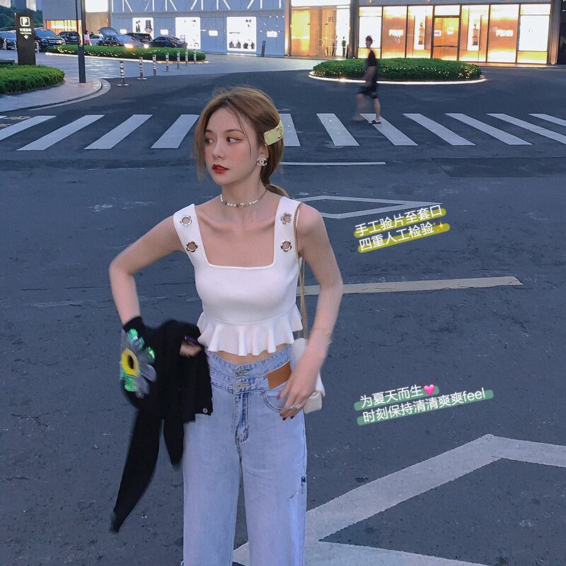 南西姉妹ピュアカラーキャミソール女性2021年新夏スクエアカラースモールフレッシュワイルドショートホルタートップ s2812192695571655