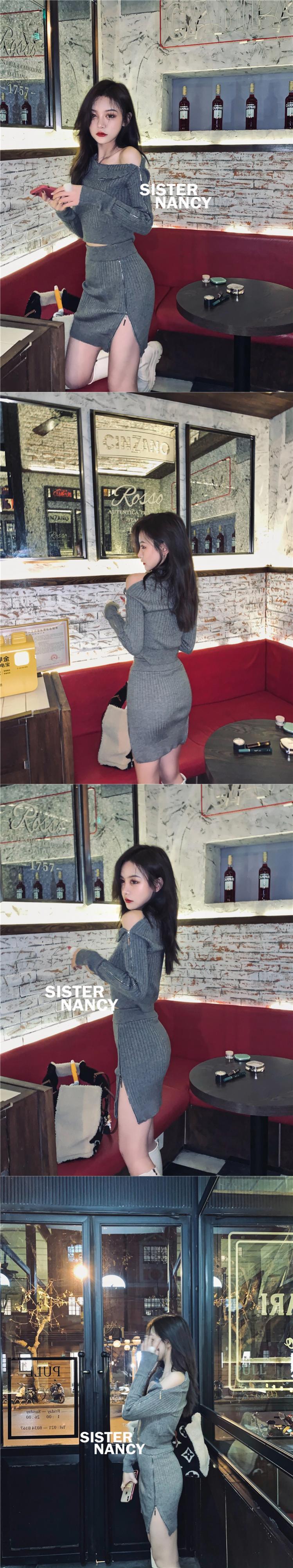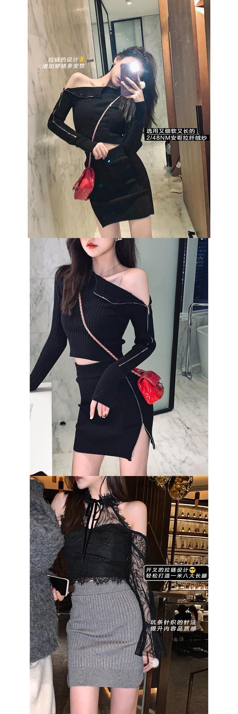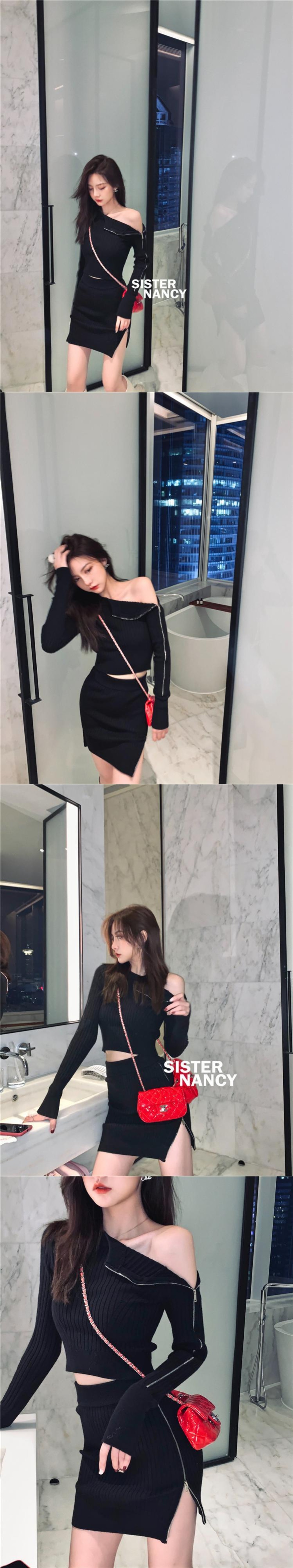 NanXiのハイストリートドラッグシスターニットスーツスカート女性2021年初春新パッケージヒップスカートツーピーススーツ s2812124416331454