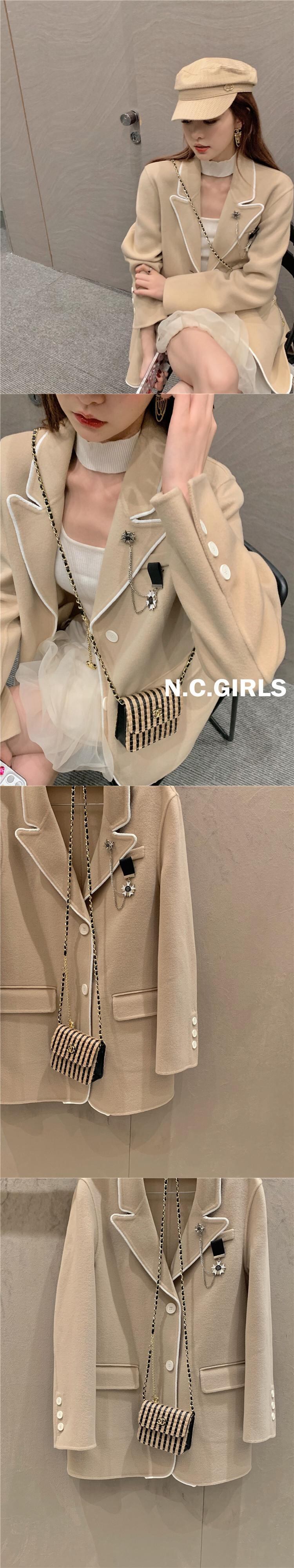 南西姉妹カレッジスタイル両面ウールスーツジャケット女性春秋新作ブラックデザインセンスニッチオールマッチブラウス s2812179754383329