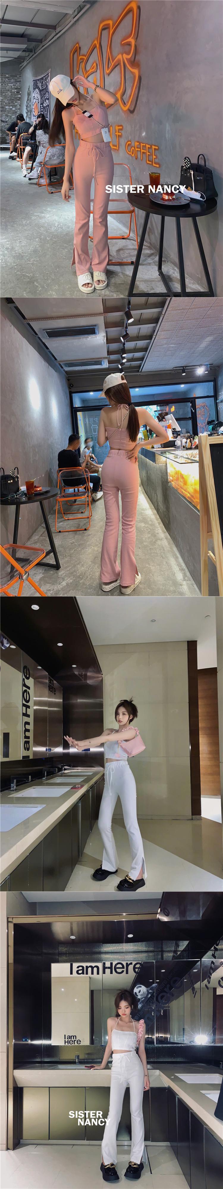 南西姉妹カジュアルファッションスーツ女性夏デザインスリングトップ2021新しいスプリットワイドレッグパンツ s2812188652605947