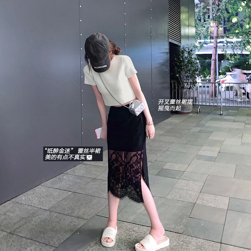 シスター南西ホワイトレースハーフレングススカートウエストAラインスカートミドルレングス2021サマースタイルヒップスカート s2812150655459192