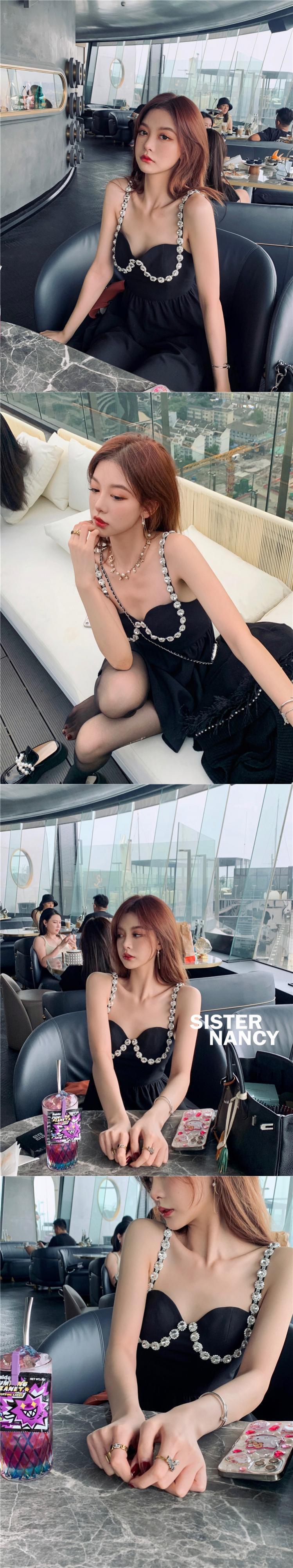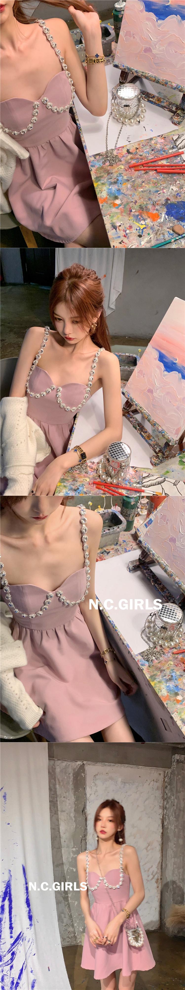 初秋の新しいスタイルのシスターナンシーの自家製ショルダーストラップドリルサスペンダードレス、小さなウエスト、薄いノースリーブのスカート s2812126543157291