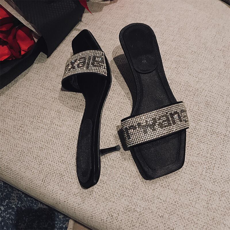 姉妹南西ラインストーンサンダル女性の2021年夏のかかとのスティレットと遊び心のあるアウタースリッパ s2812184809526023