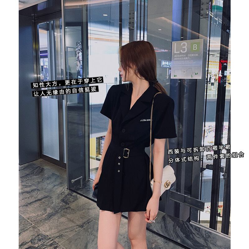 南西姉妹ハーフレングススカートスーツ女性2021年夏新気質小さく背が高くて薄いプリーツスカートツーピーススーツ s2812161289958291