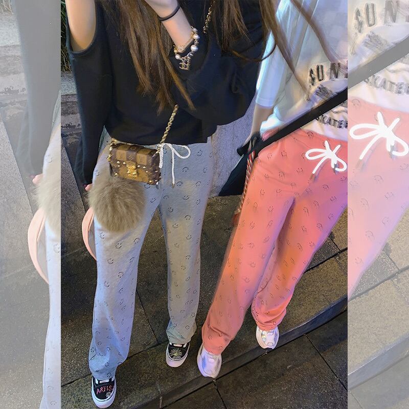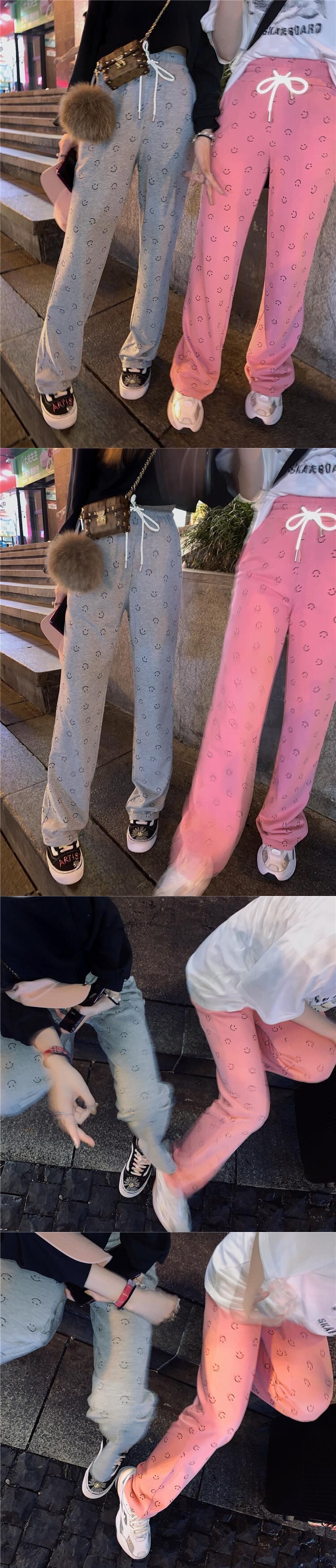 南西姉妹カスタムプリントワイドレッグパンツレディース2021新デザインハイウエストドレープロースルーズオールマッチカジュアルパンツ s2812173567031125