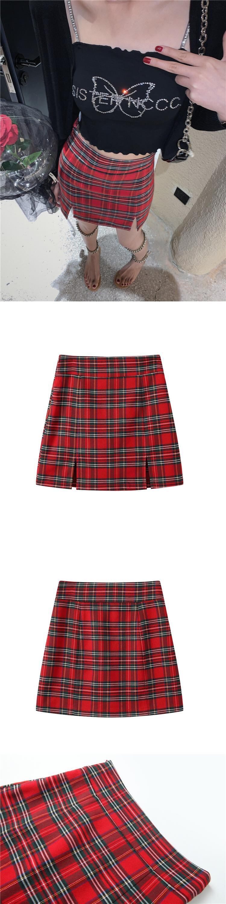 南西姉妹格子縞スカート女性2021年夏の新しいハイウエストスリムセクシースプリットヒップスカートファッショントレンド s2812173642862314