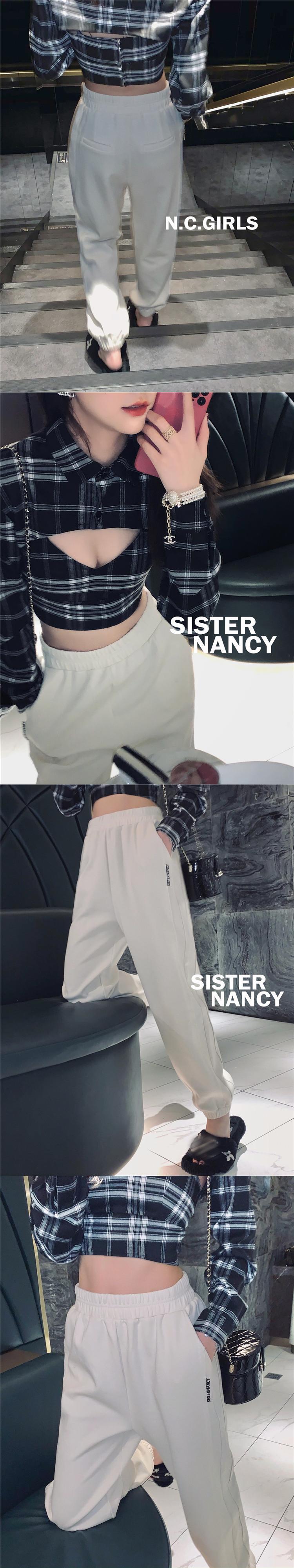 シスターナンシーのジュエラーレザーラベルストラップカジュアルパンツレディース2021年春新しいルーズスポーツアウターウェアパンツ s2812111872829997