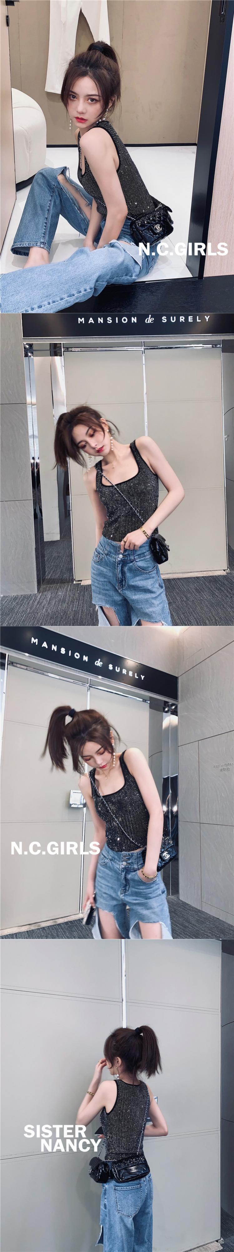 シスターナンシーの破れたワイドレッグジーンズの女性の2021年春夏の新しいデザインセンスの女性のマイノリティは薄いパンツのトレンドを示しています s2812157565753742