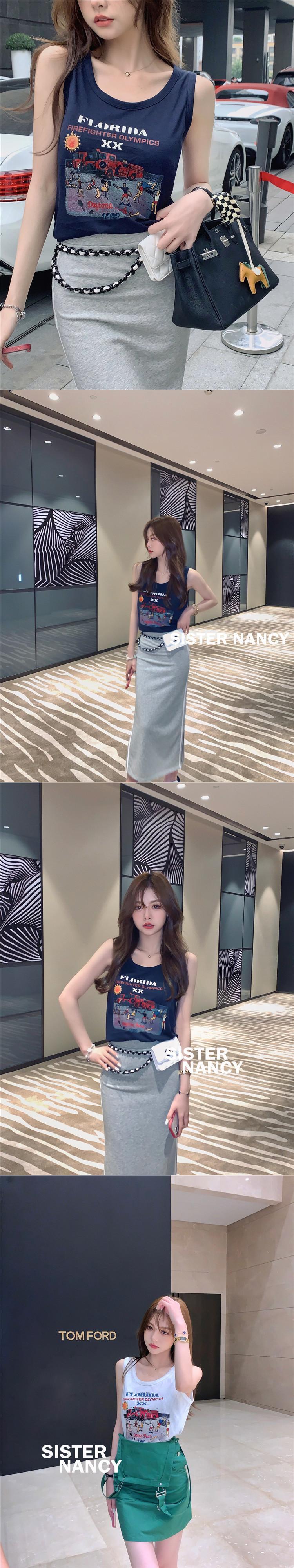 姉妹南西ノースリーブTシャツ女性夏レトロプリントチョッキ半袖2021ワイルドトップ s281212130722181