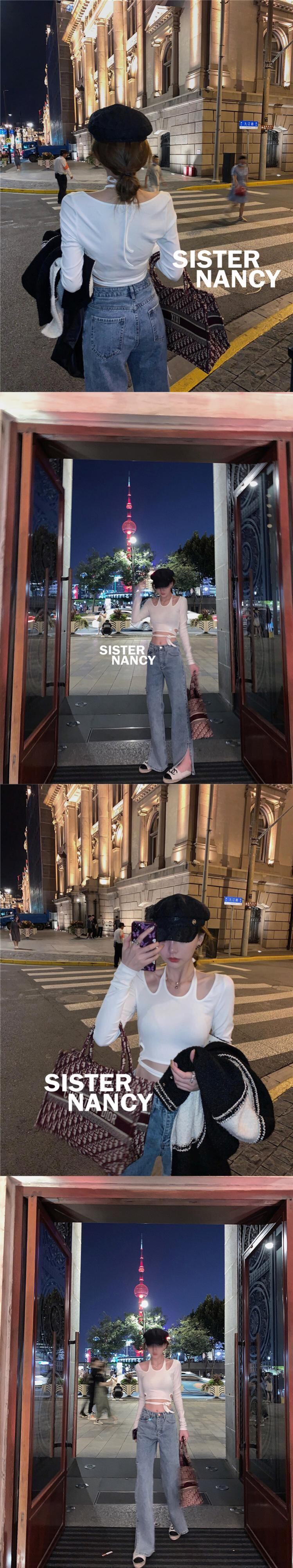 NanXiの姉妹ホルターネック中空ボトミングシャツ女性2021新しいセクシーなワイルドファッションスリム長袖クロップトップ s2812160429092793