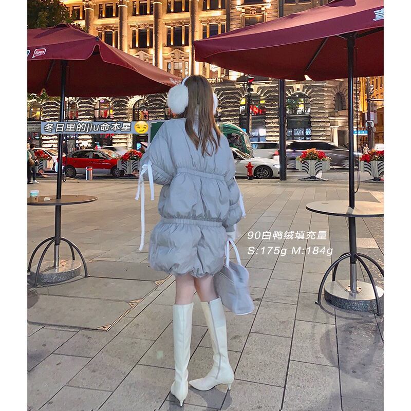 南西姉妹の白いダックダウンパンダウンジャケット女性の2021年秋冬新しい洋風ルーズ厚手のミドル丈コート s2812120306137148