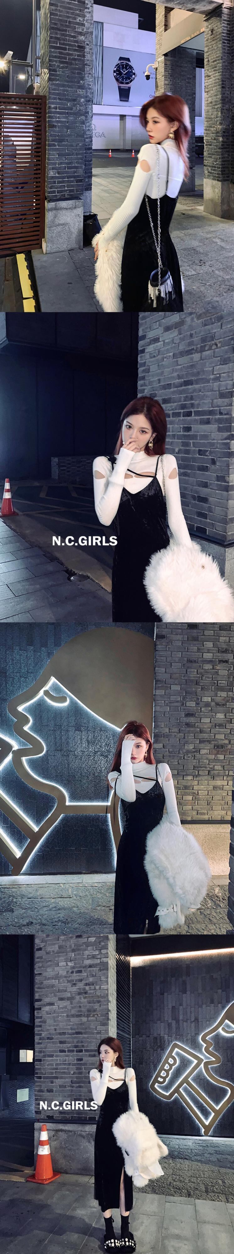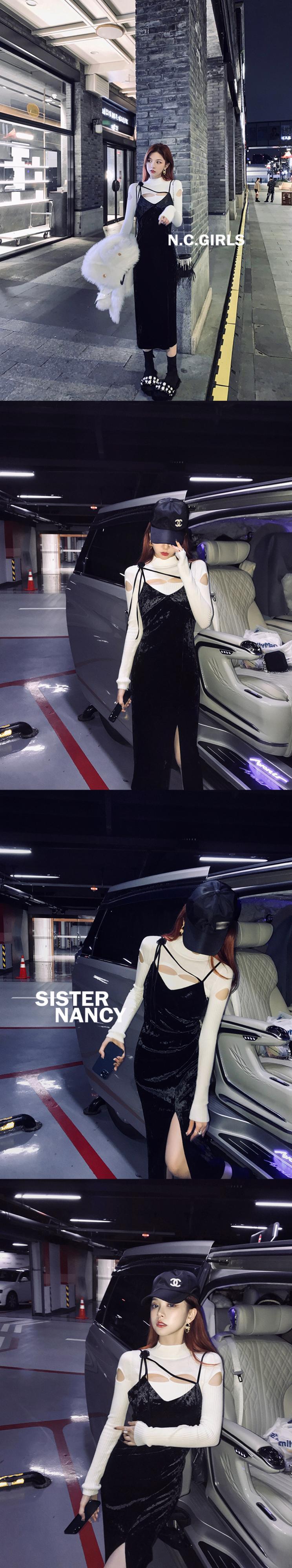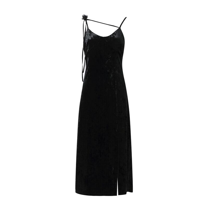 シスターナンシープラチナラバーベルベットサスペンダースカート女性秋冬Vネックセクシースリムリトルブラックドレスドレス付き s2812144334823442