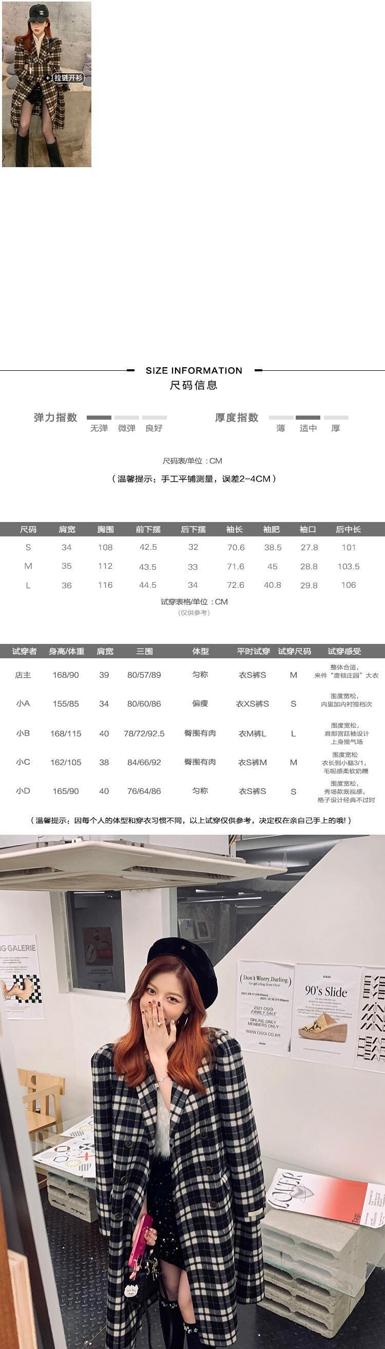 NanXiの姉妹VeniceAvenueは、両面ウールコートの女性の秋と冬の新しいルーズな膝上ウールコートをチェックします s2812131343952726