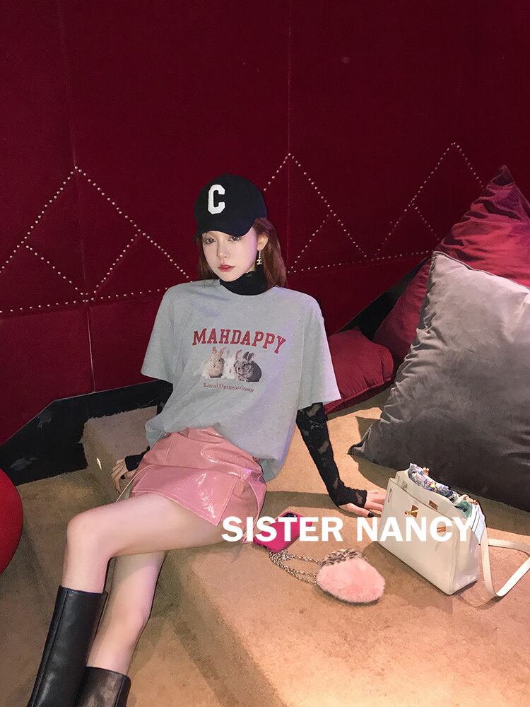 シスターナンシーラウンドネックTシャツ、女性の2021スタイルの用途の広いルーズフォールディングトップス s2812183578241035