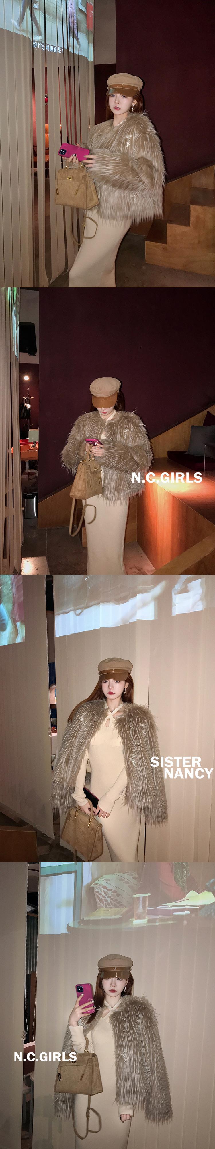 ナンシーシスターボビプラスミックスカラーロングファーコートウィメンズ2021冬新作オールマッチウォームトップ s2812153260591889