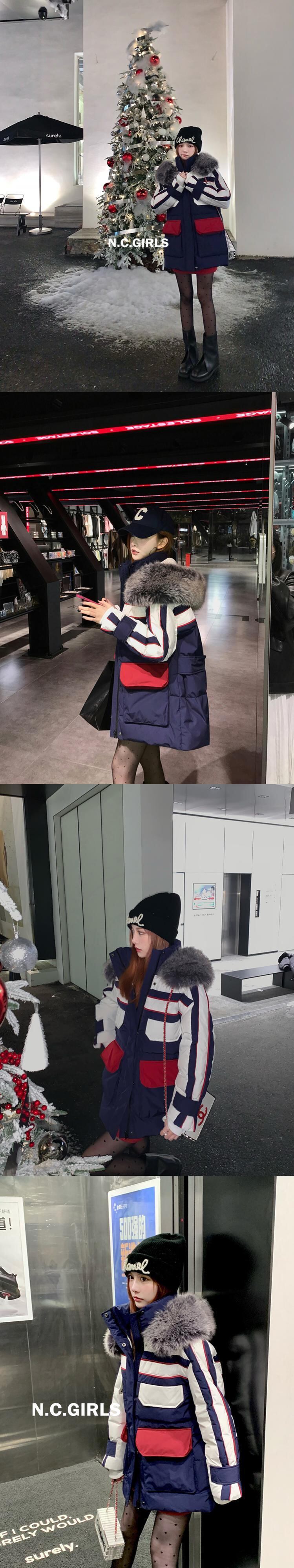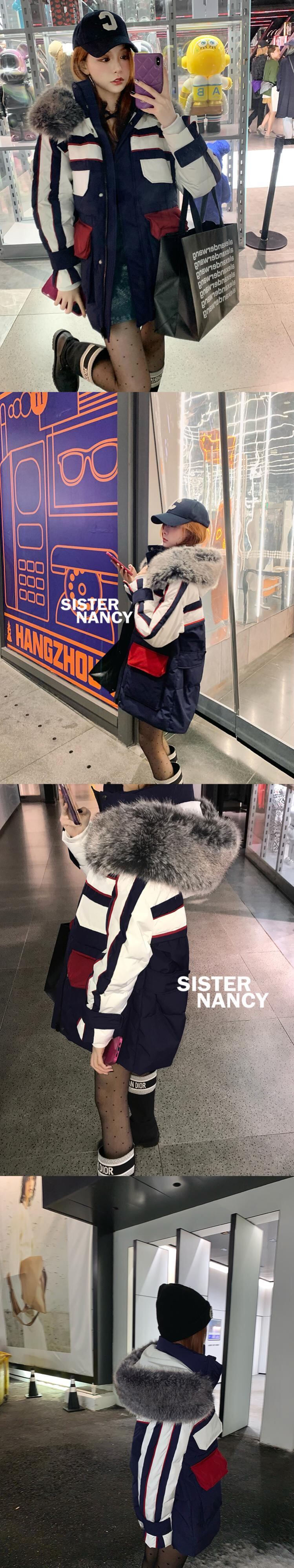 【スポット】ナンシーシスターレトロカジュアルカラーコントラストロングダウンジャケットウィメンズ2021冬防風ウォームジャケット s281211873059083