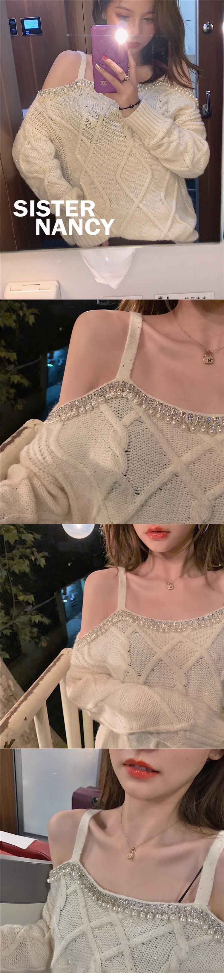 【スポット】シスターナンシー【クリックモデル20%オフ】オフショルダーセーターレディースウエスタンスタイルの怠惰なアウター s2812164467594236