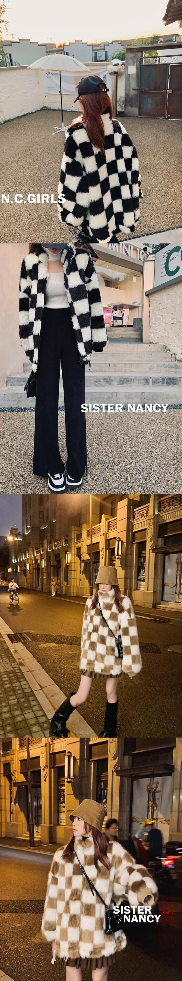 【スポット】ナンシ姉妹市松模様ウールコート女子2021年秋冬新作ハイネックファッショナブルウォームトップ s2812152388274707