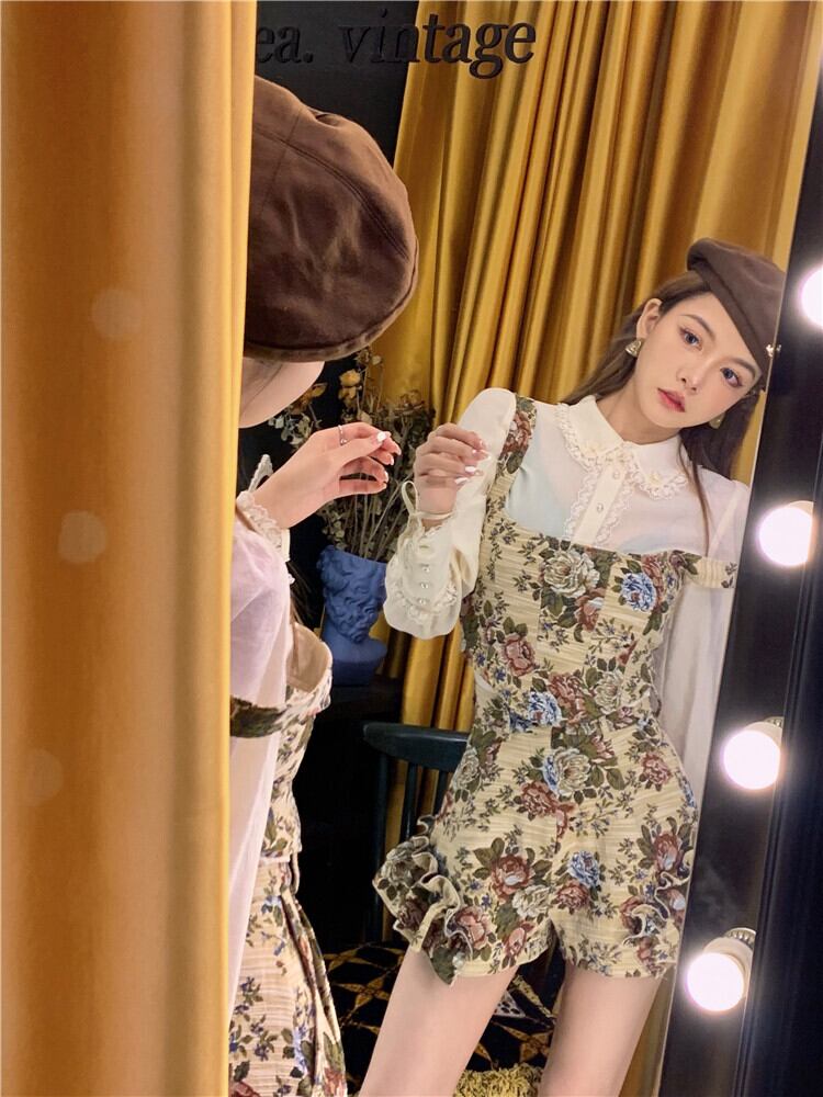 Nanxi姉妹カスタムレトロパレススタイルスーツキャミソール女性2021新しいハイウエストスリムAラインショーツ s281213342514644