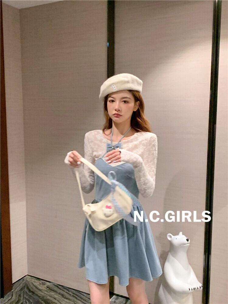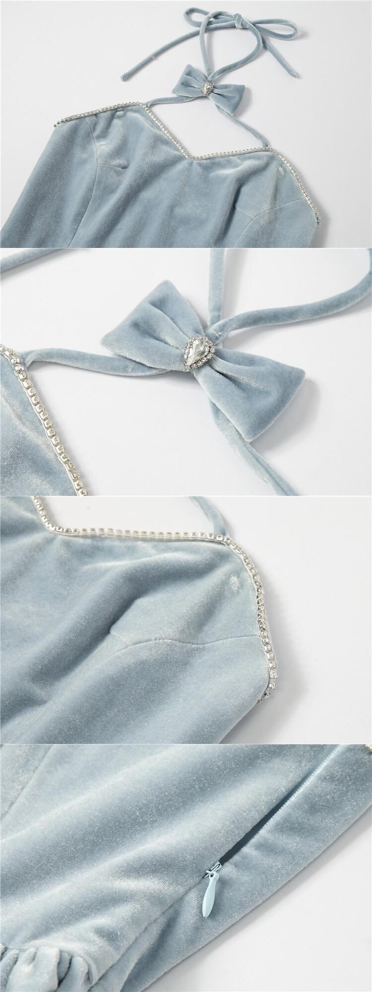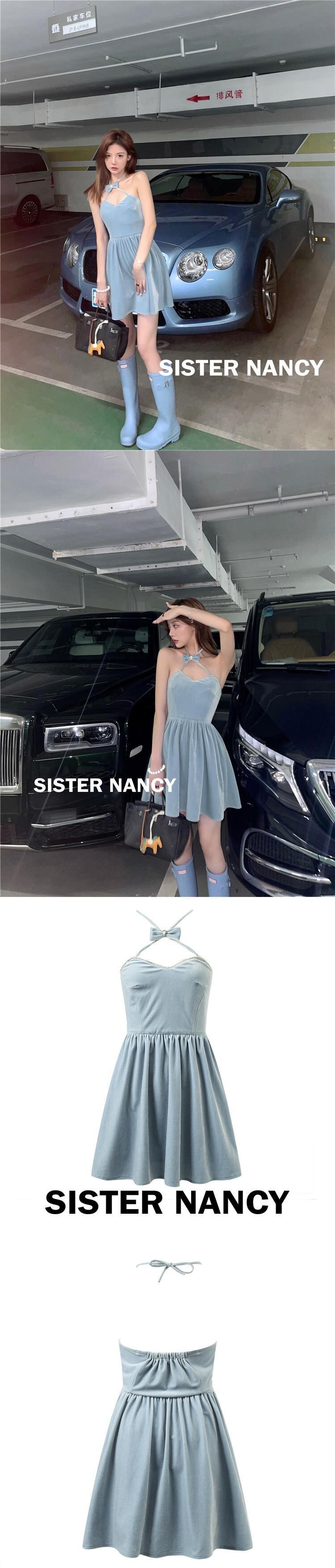 シスターナンシーベルベットボウVネックサスペンダードレスレディース秋のニュースタイルウエストとスリムノースリーブプリンセスドレス s2812160861604779