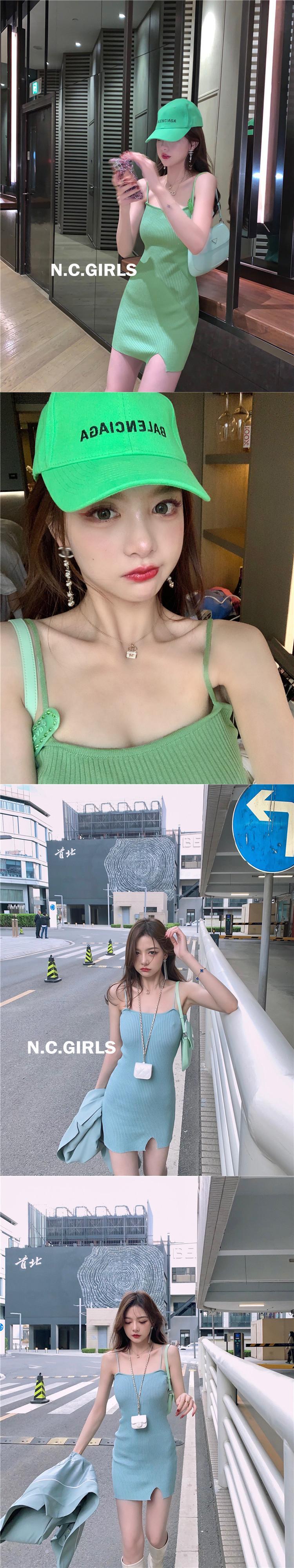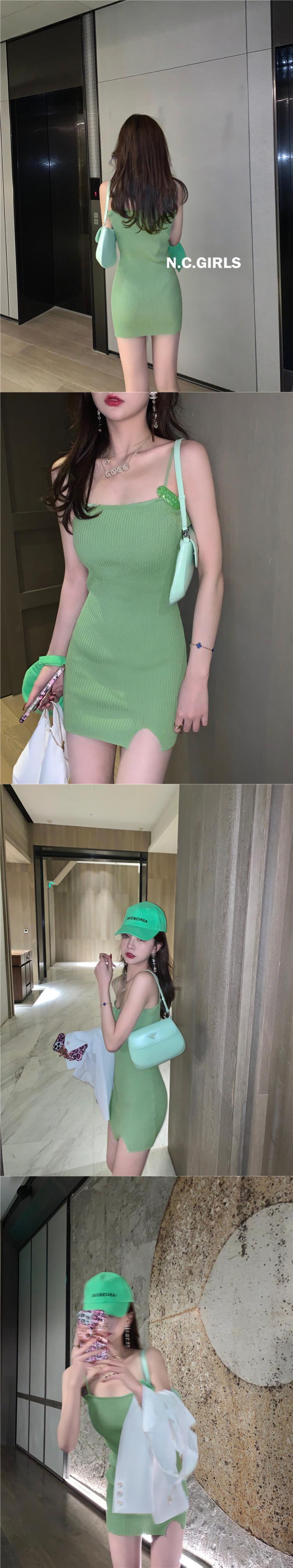Nanxi姉妹キャンディーヒンスイートアイスシルクニットサスペンダースカート2021夏の新しいセクシーなスリムなドレス s2812139750252546