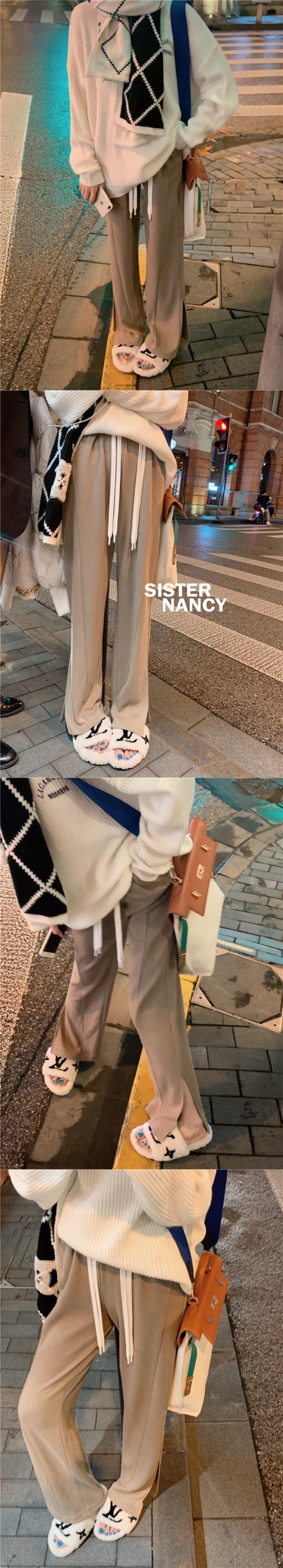 南西姉妹ハイウエストスプリットワイドレッグパンツレディース2021年秋冬新バージョンルーズストレートカジュアルスポーツパンツ s281217532607370