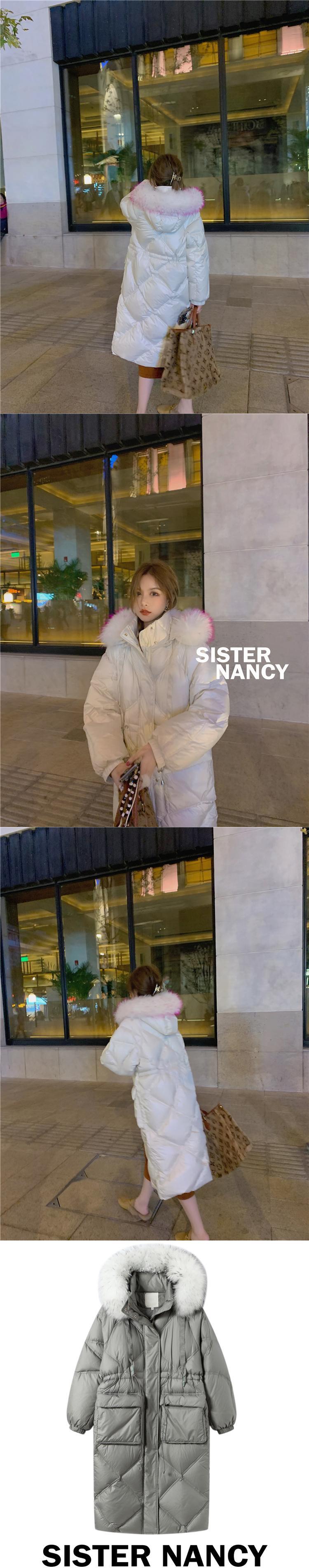 【スポット】ナンシーシスターホワイトダックダウンジャケットレディース秋冬新作スウィート&ウエスタンスタイルブラックロングトレンディコート s2812115102836764