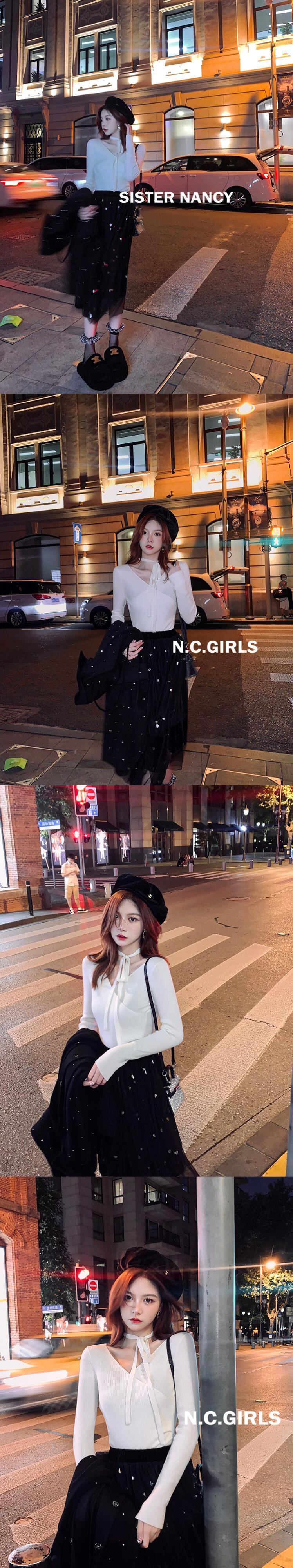 シスターナンシーベイリーズスウィートワインVネックホルターネックニットボトミングシャツレディースデザインは薄くて長袖のトップ秋 s2812118286846734