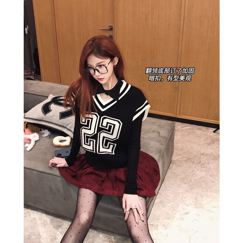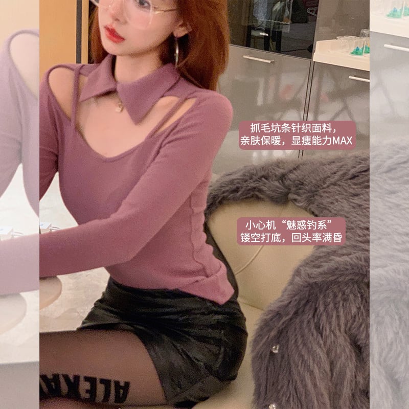 ナンシ姉妹のチャームフィッシングニットボトミングシャツレディースデザインセンスニッチ冬新作トップストレンディ s2812182248207332