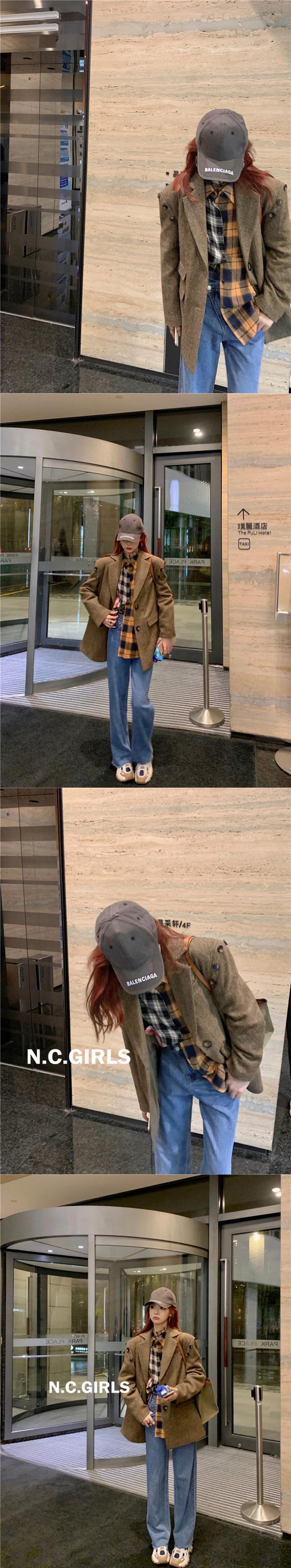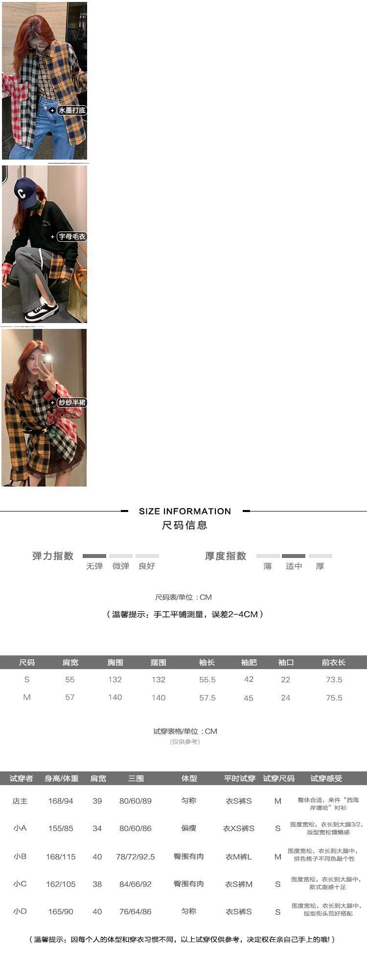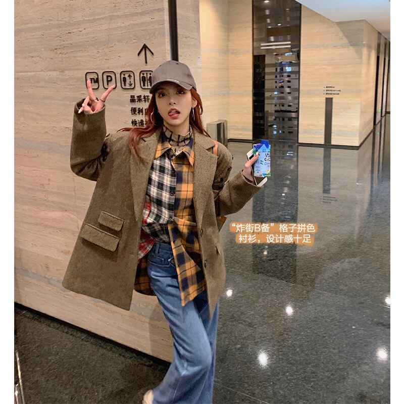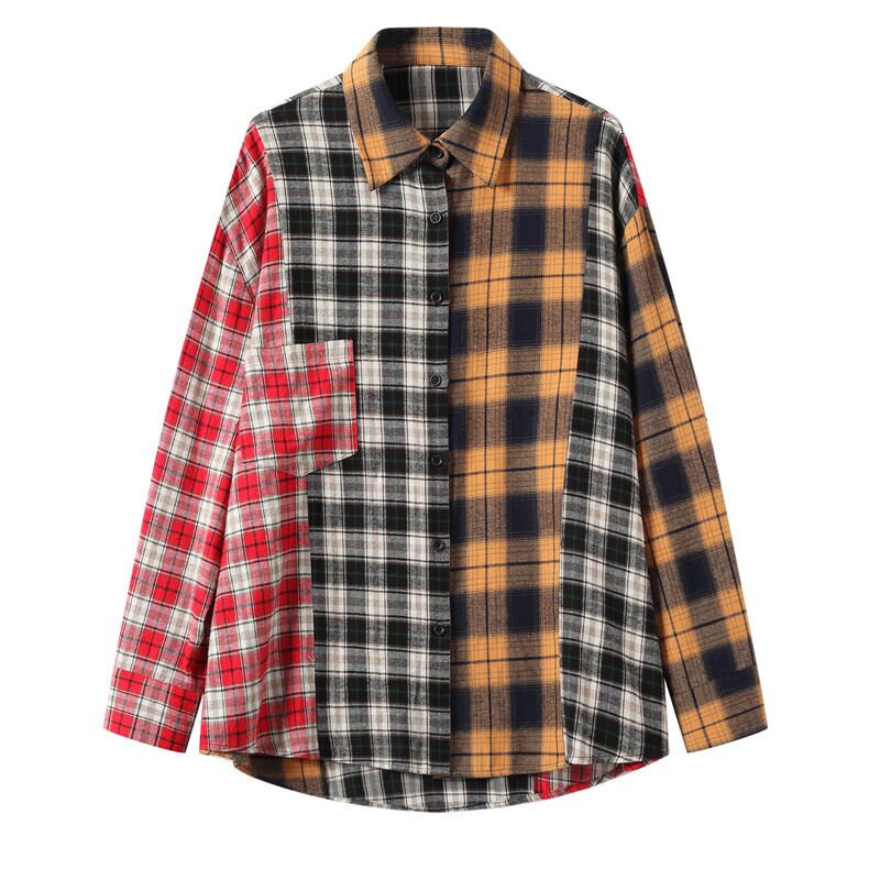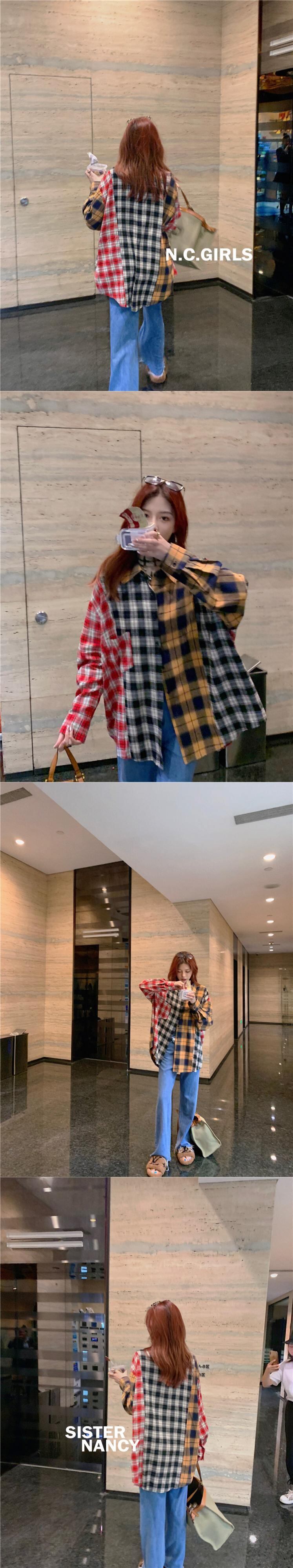 南西姉妹チェック柄カラーマッチングシャツレディースデザインセンスニッチ2021秋新バージョンルーズオールマッチトップ s2812196485837558