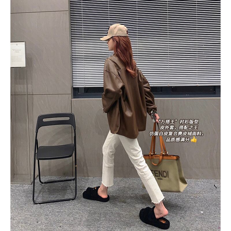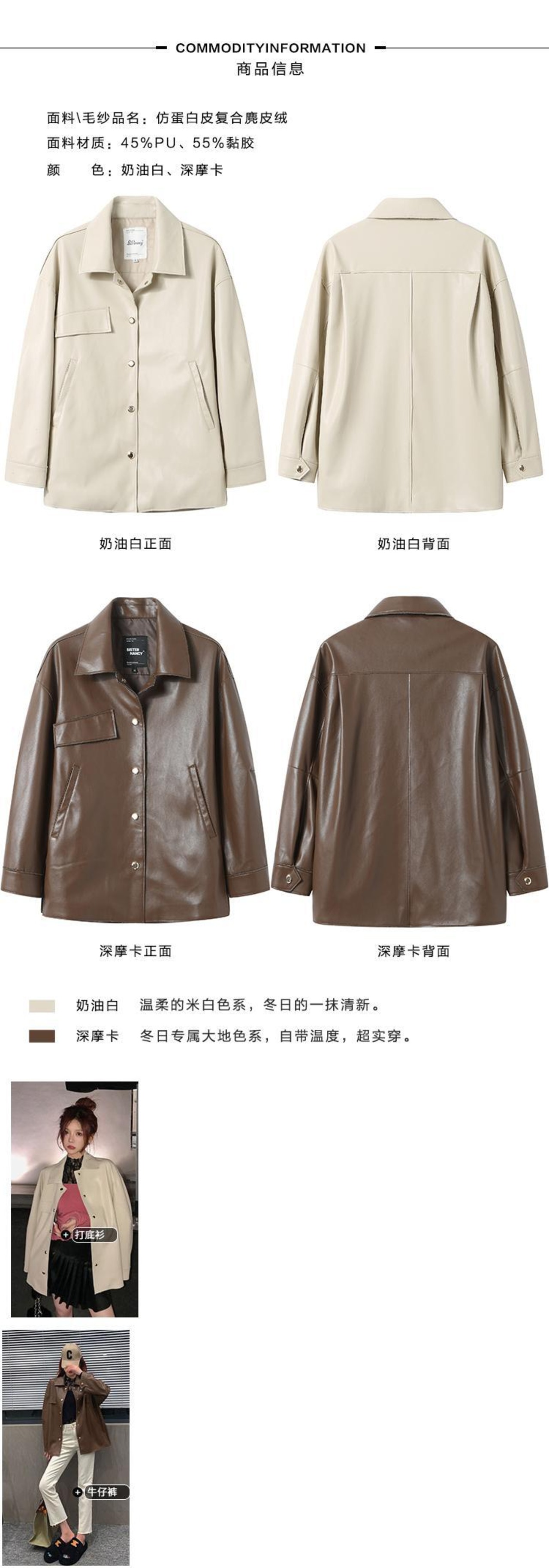 南西姉妹のワンタワンシャツとレザーの2021年秋冬新作ホワイトオールマッチルーズショートジャケットトップ s2812170562050983
