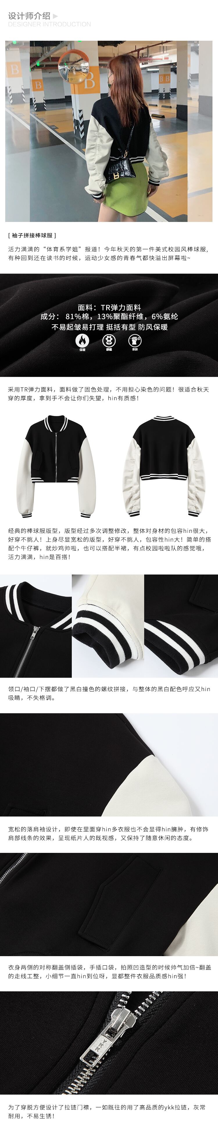 南西姉妹の袖ステッチ野球ユニム女子2021年春秋新作オールマッチルーズジャケットショートトップコート s2812187409302344