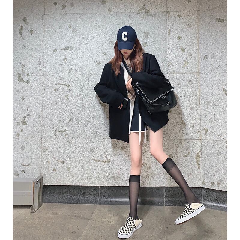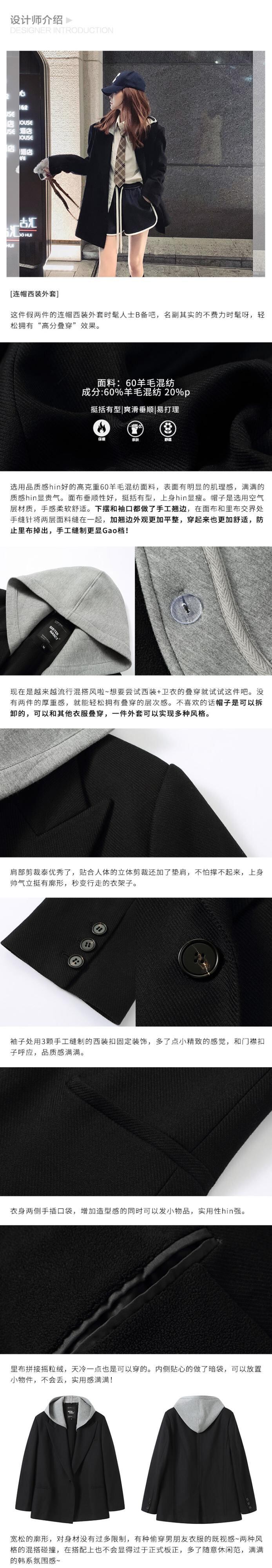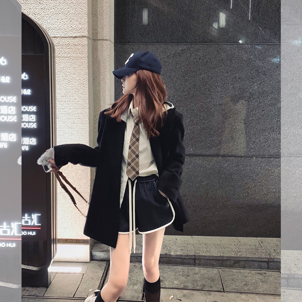 ナンシ姉妹は、ハイスコアの女性の2021年秋冬の新しい黒のオールマッチルーズカジュアルジャケットを着た偽のツーピーススーツを着ています s2812138569107101