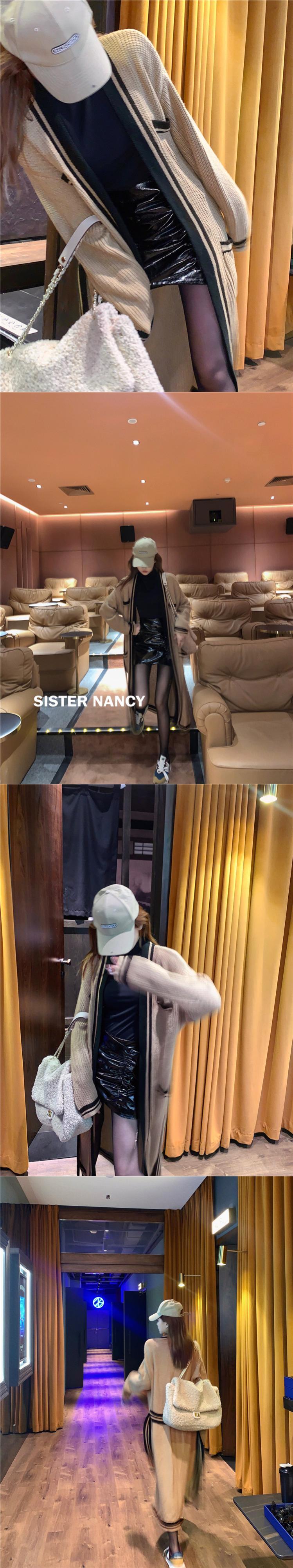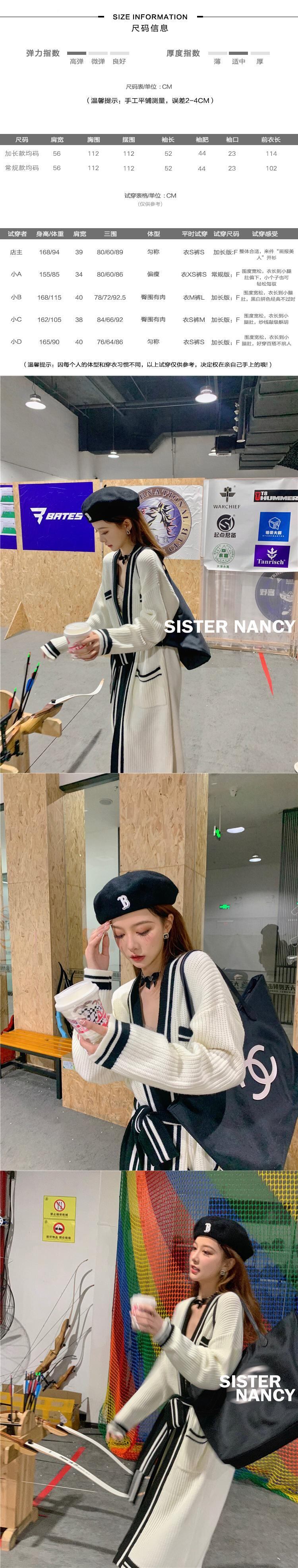 シスターナンシーのカラーブロッキングニットミドル丈セーターコート女性の2021年秋の新しいスタイルの怠惰な風のカーディガントップ s2812114086997528