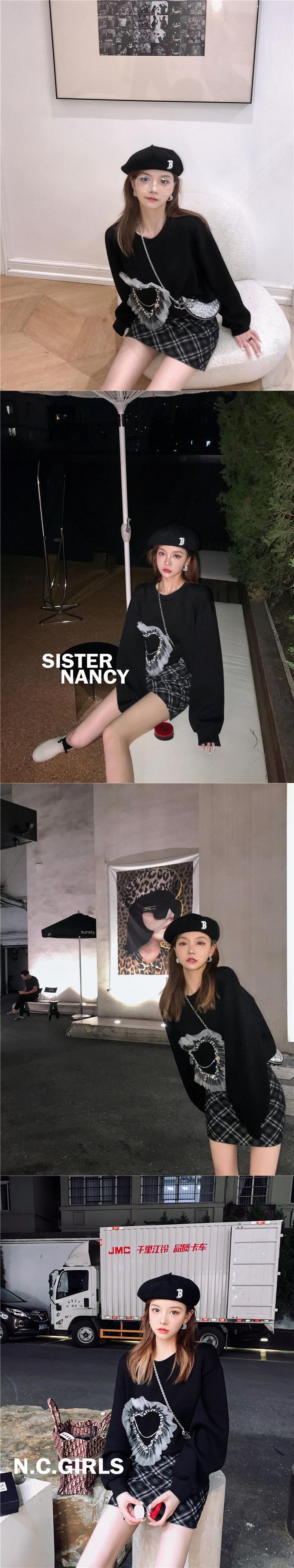 ナンシ姉妹の短いラウンドネックプルオーバーセーター女性の2021年秋新バージョンデザインニッチルーズトップ s281216469211606