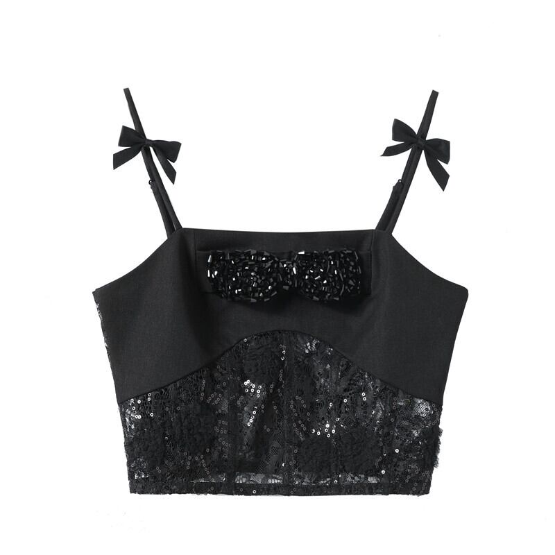 南西姉妹重工業レースセクシーキャミソール女性2021年秋新作黒ノースリーブトップス s2812198587585056