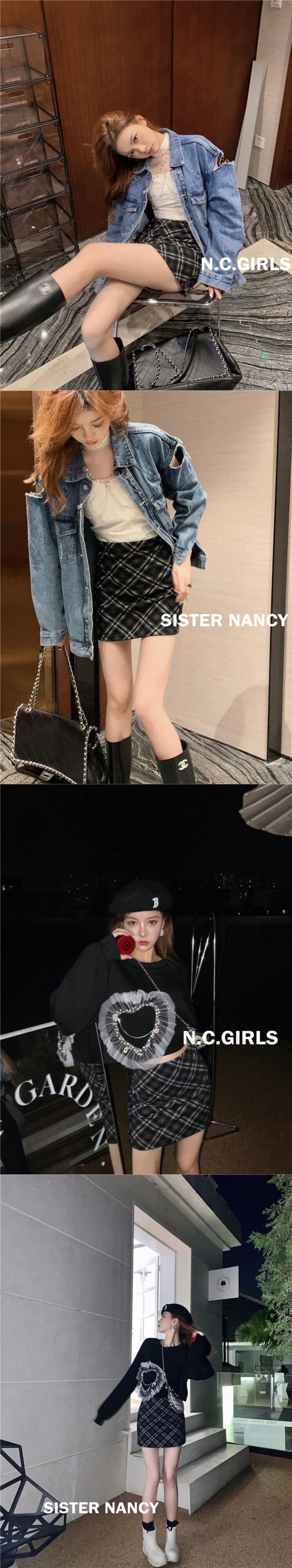 シスターナンシーブラックロンバスチェック柄スカートレディース2021年秋新作ハイウエストAラインスリムバッグヒップスカート s2812135554450512