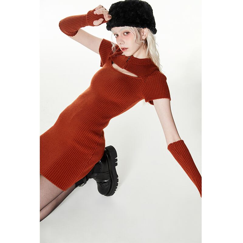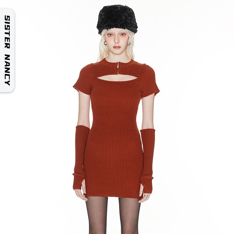 シスターナンシー3.4「ラブソング」少しスパイシーな胸の開口部と2つの取り外し可能な袖を備えた半袖ニットスカート s2812112192178165