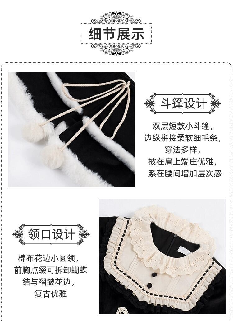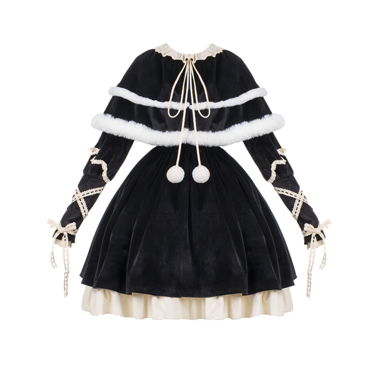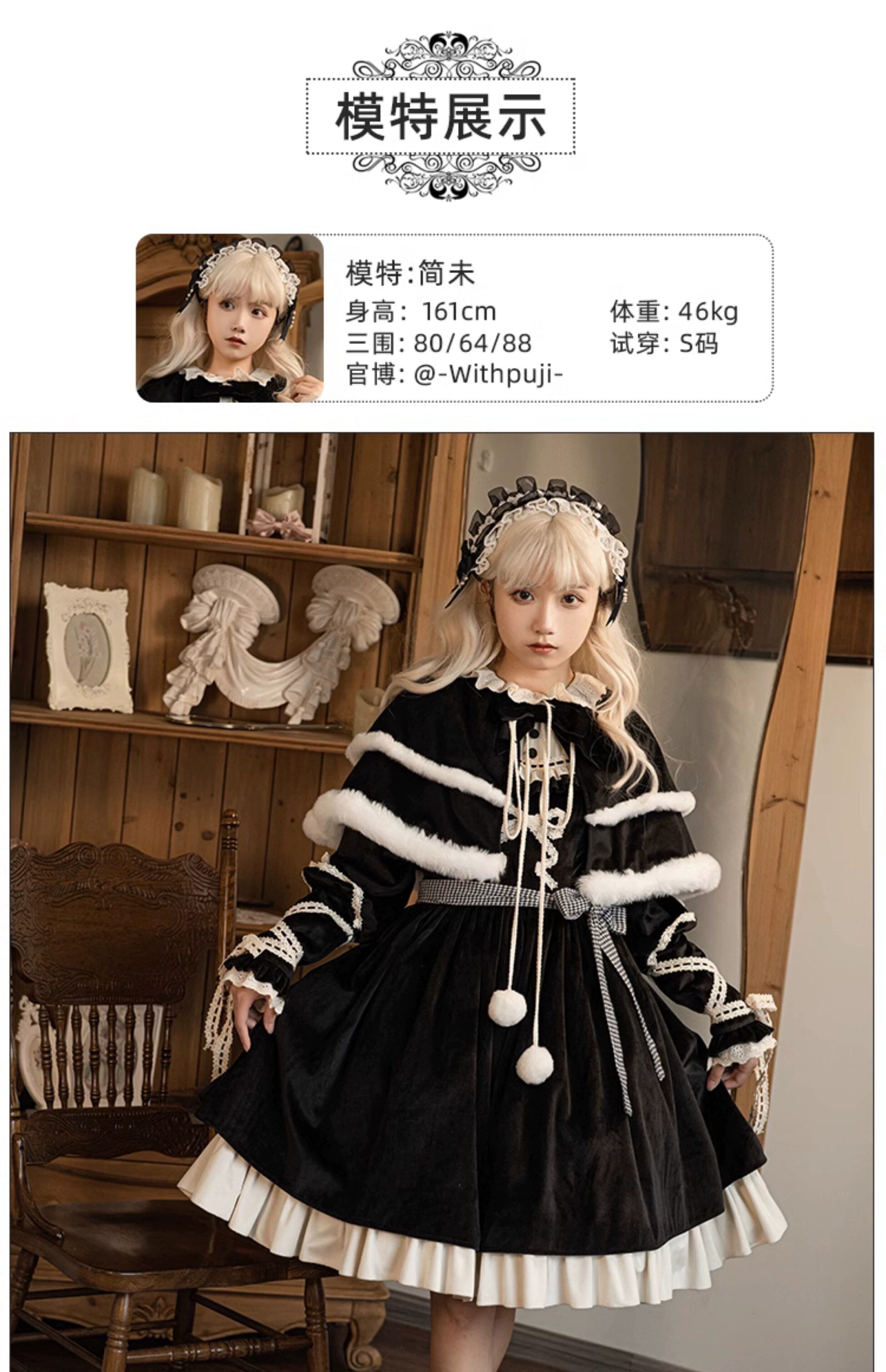 [冬のラブソングop] WPオリジナルデザイン黒エレガントな冬厚いベルベットぬいぐるみopマントツーピーススーツもっと着る ブラック ウィンター 冬物 puji71212910915
