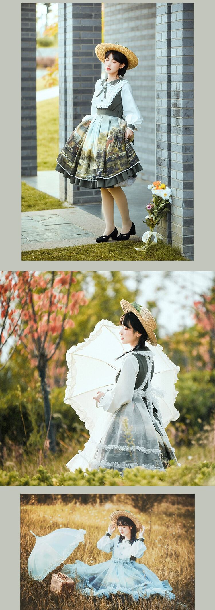 【Shimmer op】withpujiオリジナルデザイン油絵柄牧歌的レトロ甘ロリータスカートサマースタイル 大人ガーリー スウィート キュート カジュアル 夏物 puji32915331874
