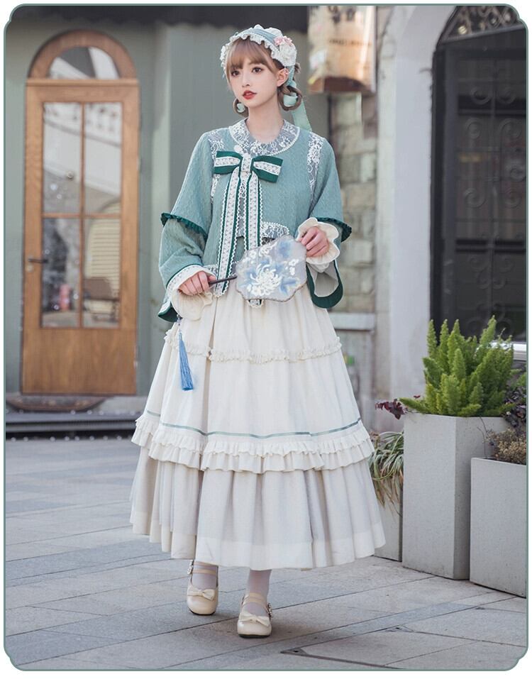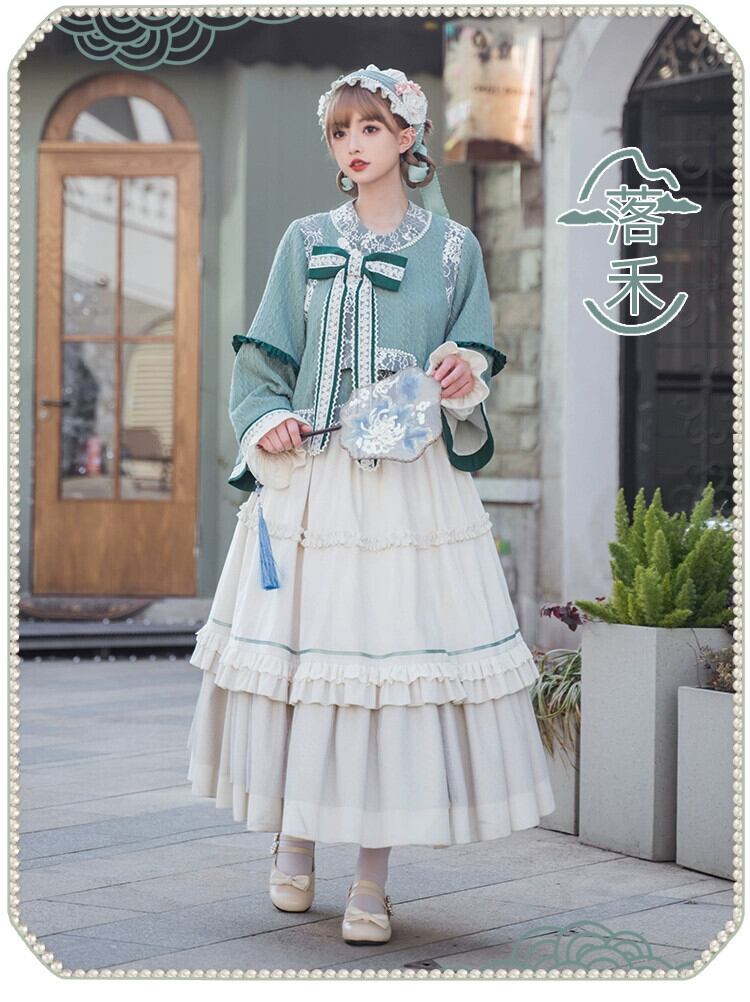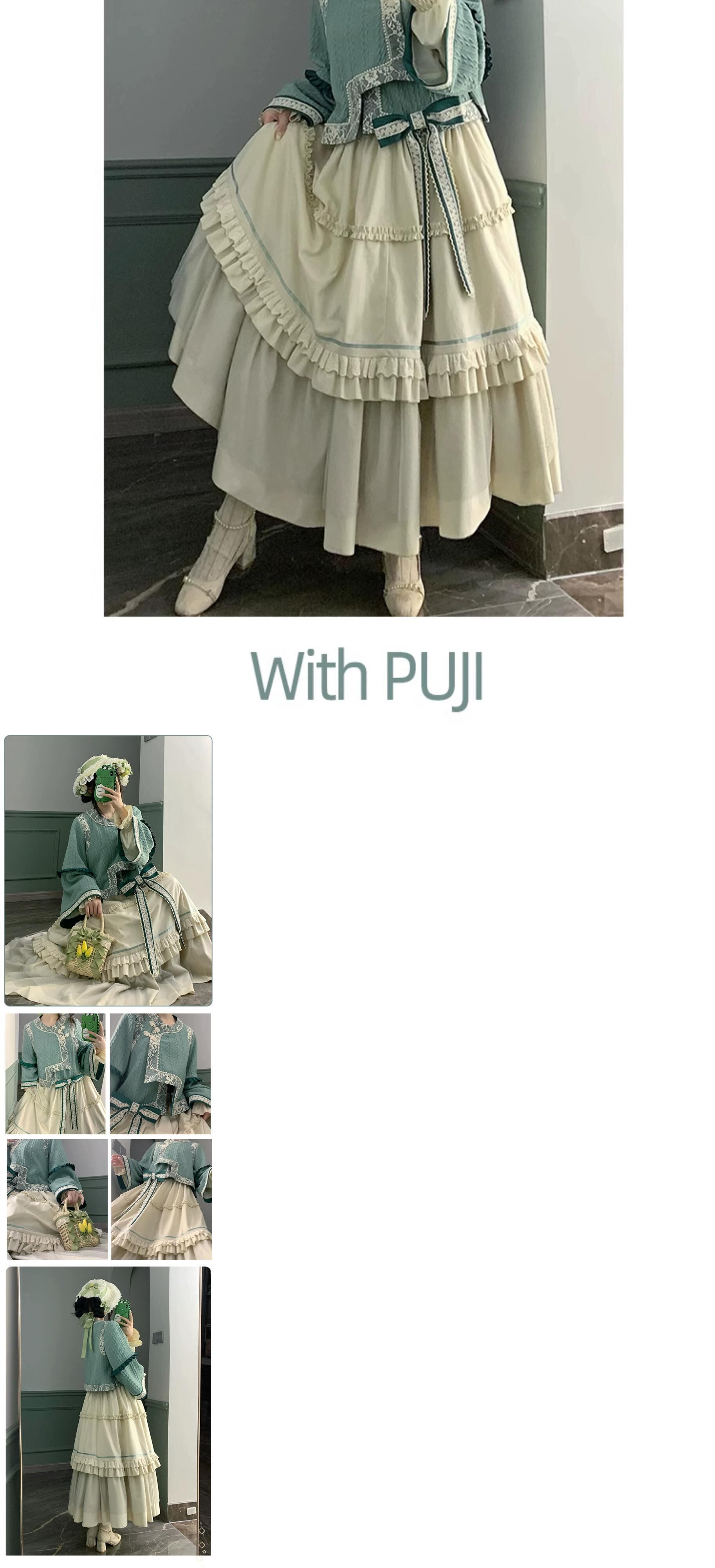 [六河] withpuji オリジナルデザイン中国風ニットトップベルベットアンブレラスカート清漢女性のツーピーススーツ puji20356590769