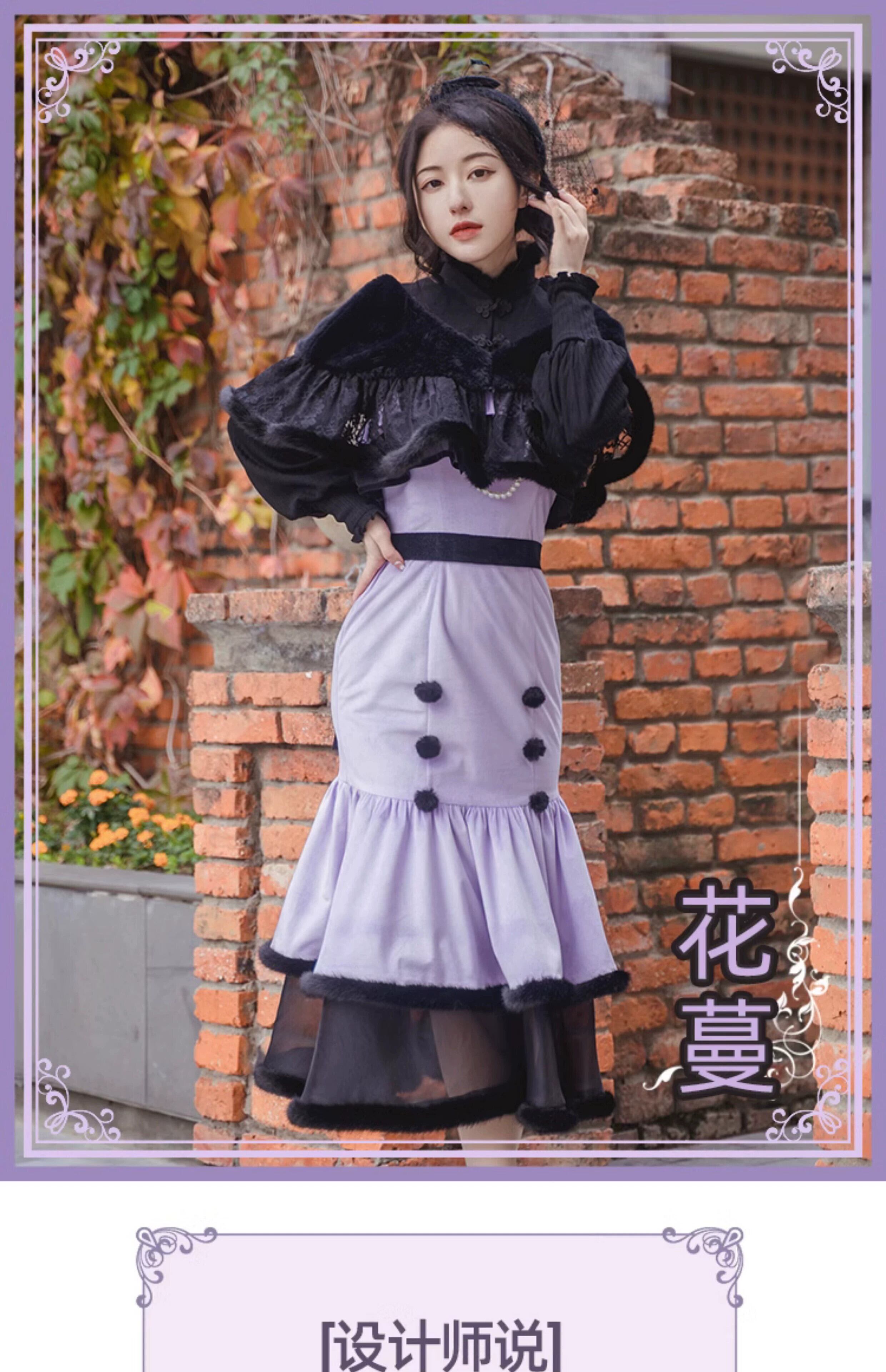 【フラワーマンジェスク】WPオリジナルデザイン エレガントクラベルベット フィッシュテールドレス ベスト ショルダー ロリータスーツ 初春 スプリング 春物 フラワーデザイン puji16434941442