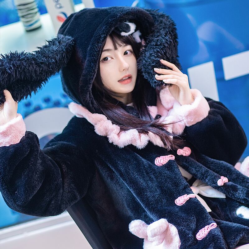 【Gulu Rabbit】WPオリジナルデザインイミテーションラビットファーフード付きスウィートロリータコート 暖かく厚手の冬ロング 大人ガーリー キュート カジュアル ウィンター 冬物 puji98543251026