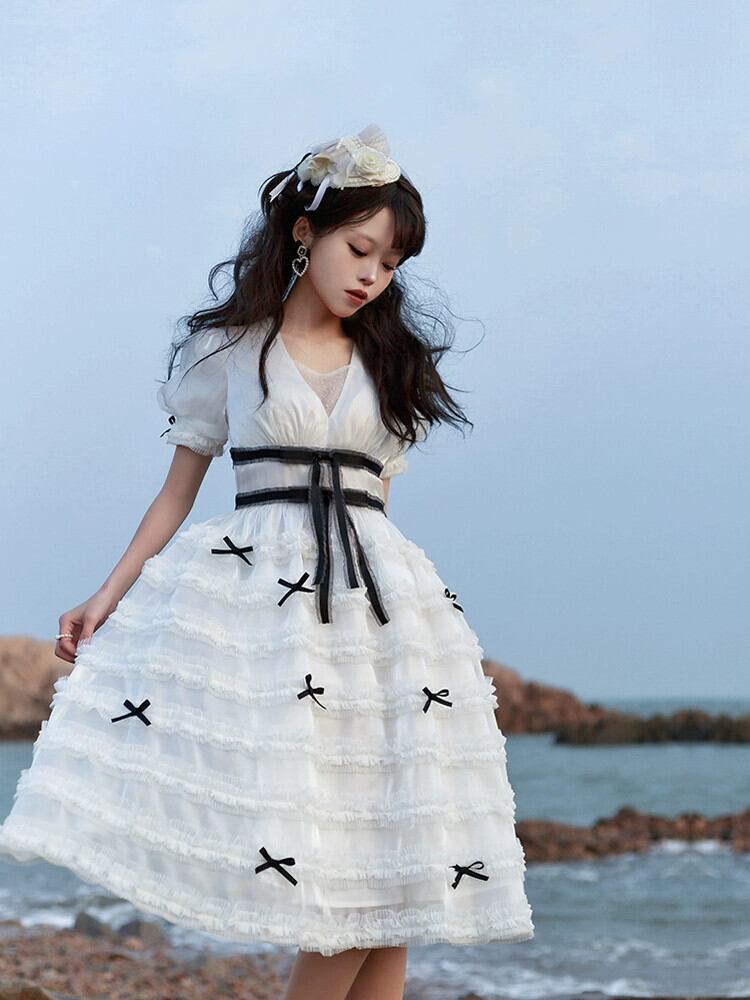 【モニカOP】ウィズプジオリジナルデザイン エレガントクラ重工プリーツケーキスカート ロリータサマースタイル 夏物 puji42389073388