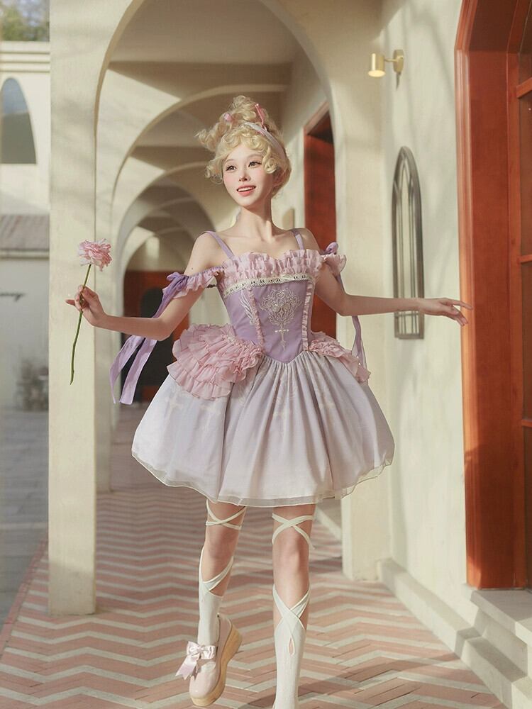 【真夏のドリームJSK】withpujiオリジナルデザイン エレガント刺繍プリントバレエワンピース ロリータ サマー 夏物 puji3119029828