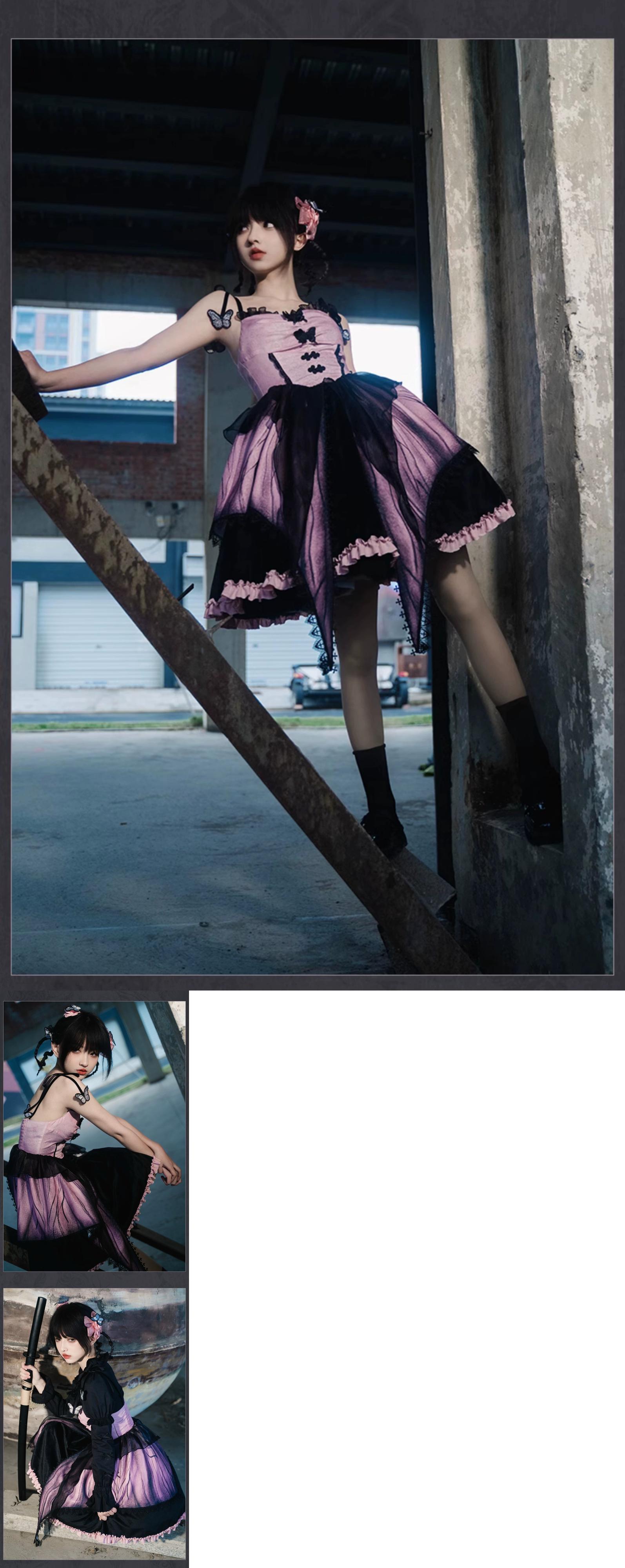 【バタフライJSK】 withpujiオリジナルデザイン ゴシックダーククロス要素 立体バタフライロリータ puji97726014287