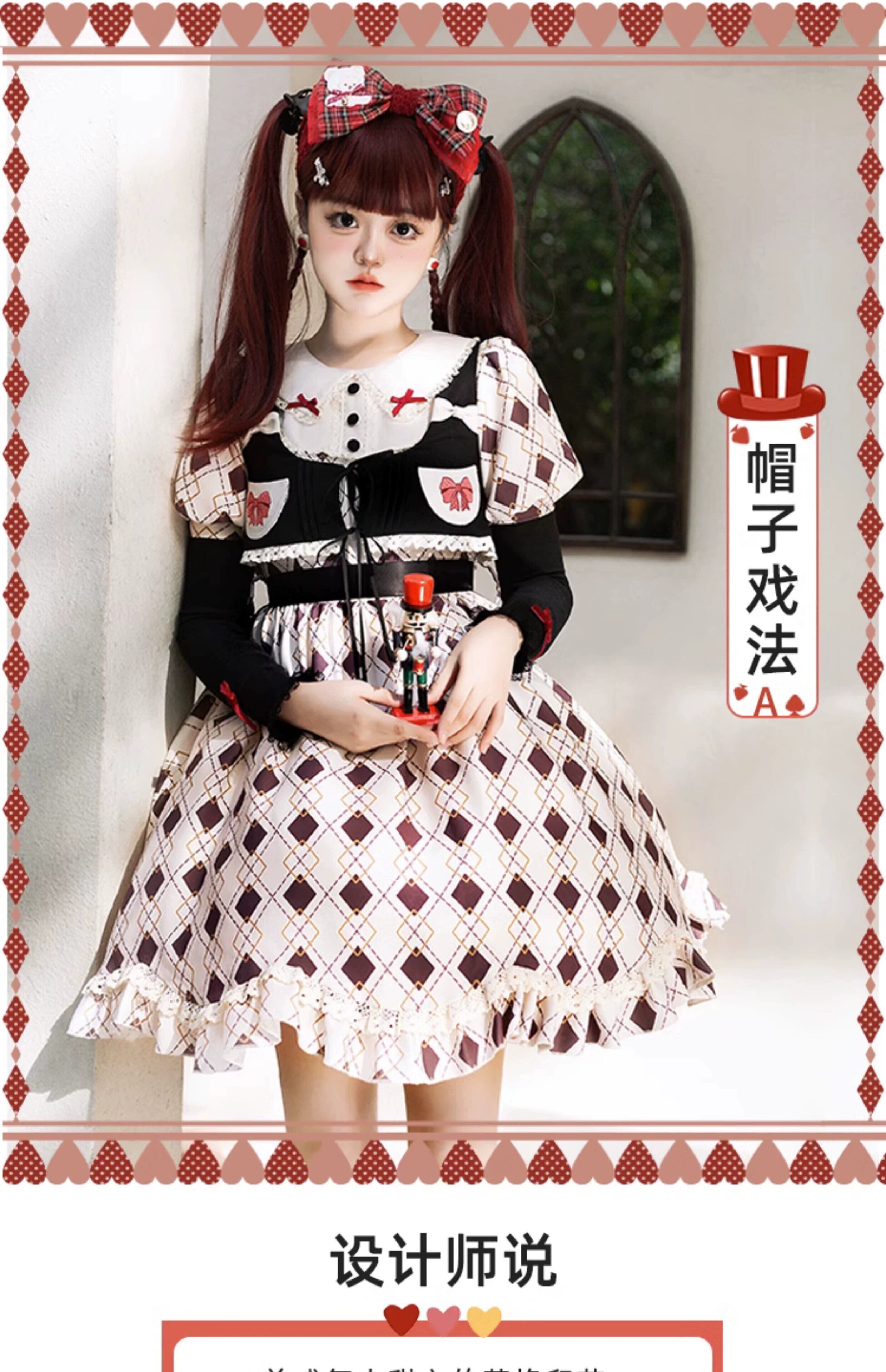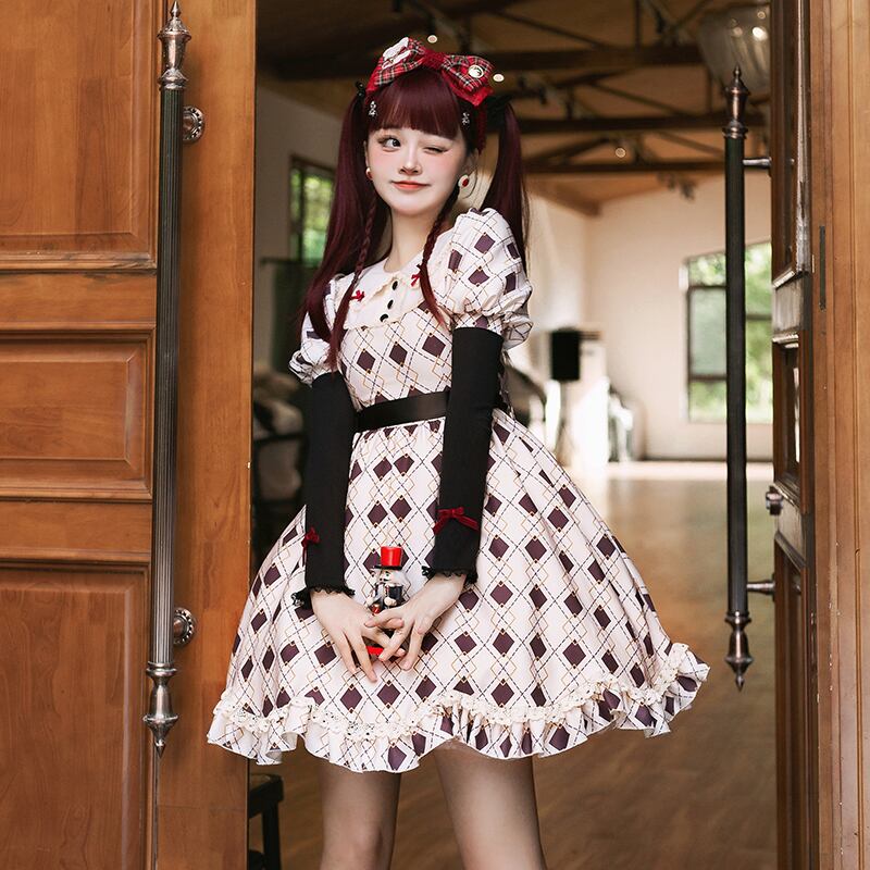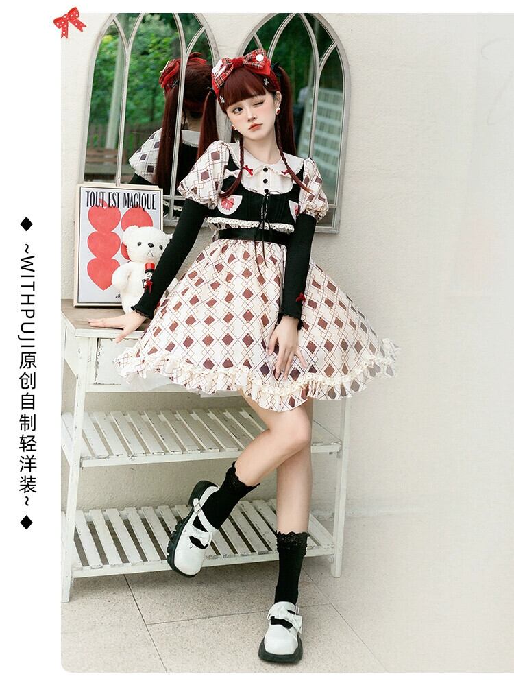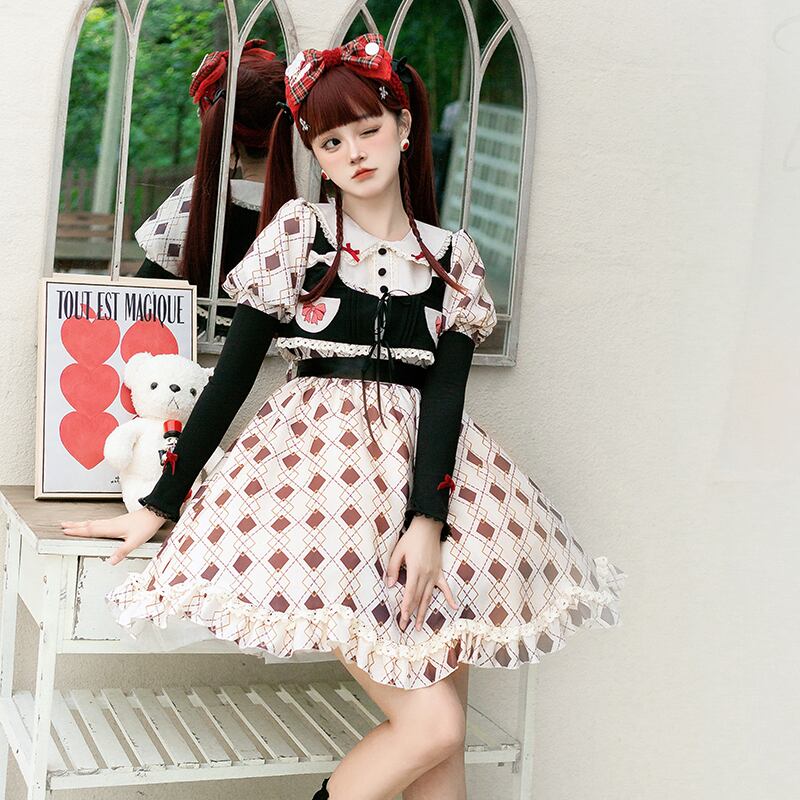 【ハットトリックOP】WPオリジナルデザイン キュートドール感覚 ひし形プリントベスト ツーピース ロリータ 夏 大人ガーリー スウィート カジュアル サマー 夏物 puji76636934565