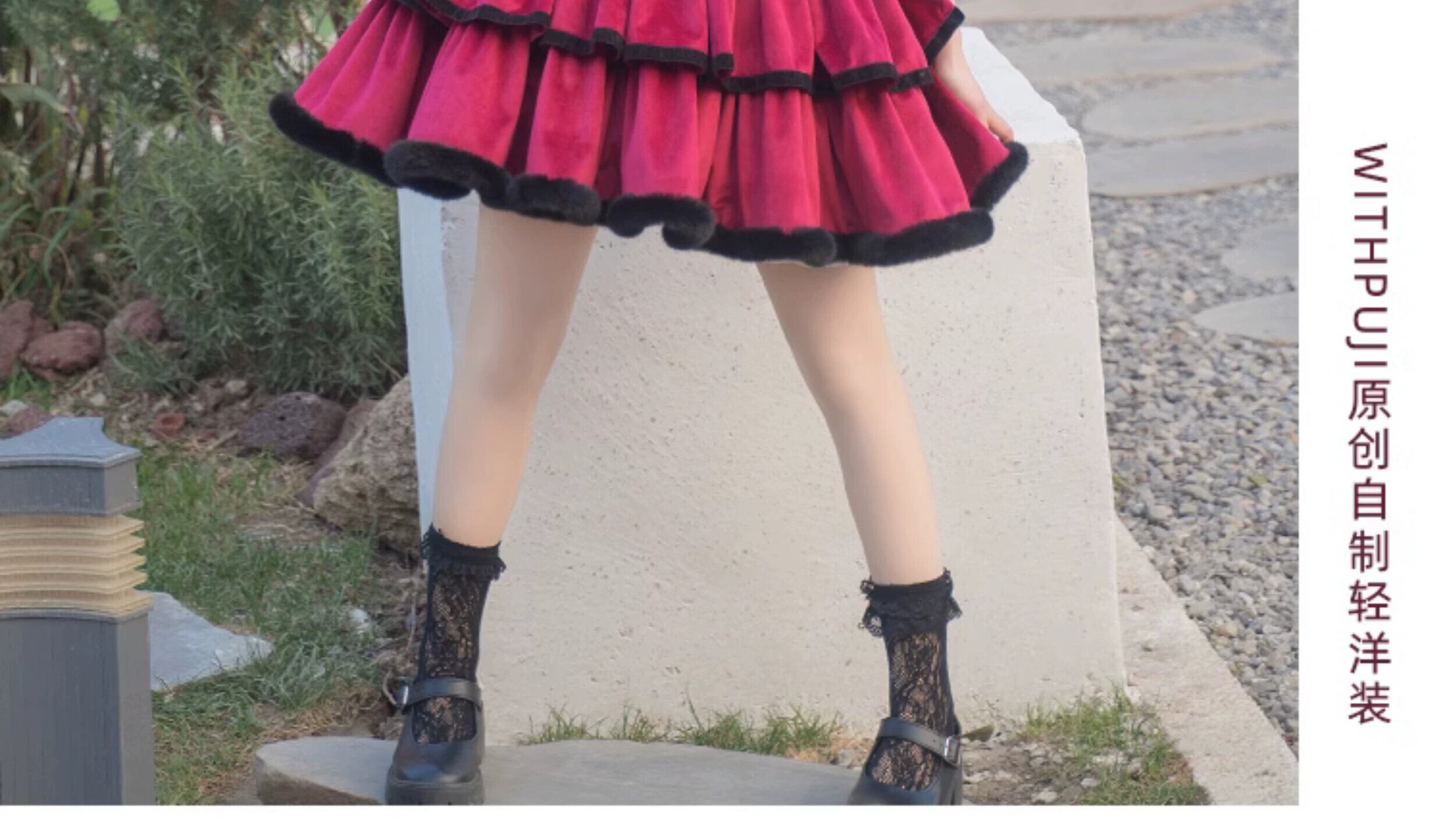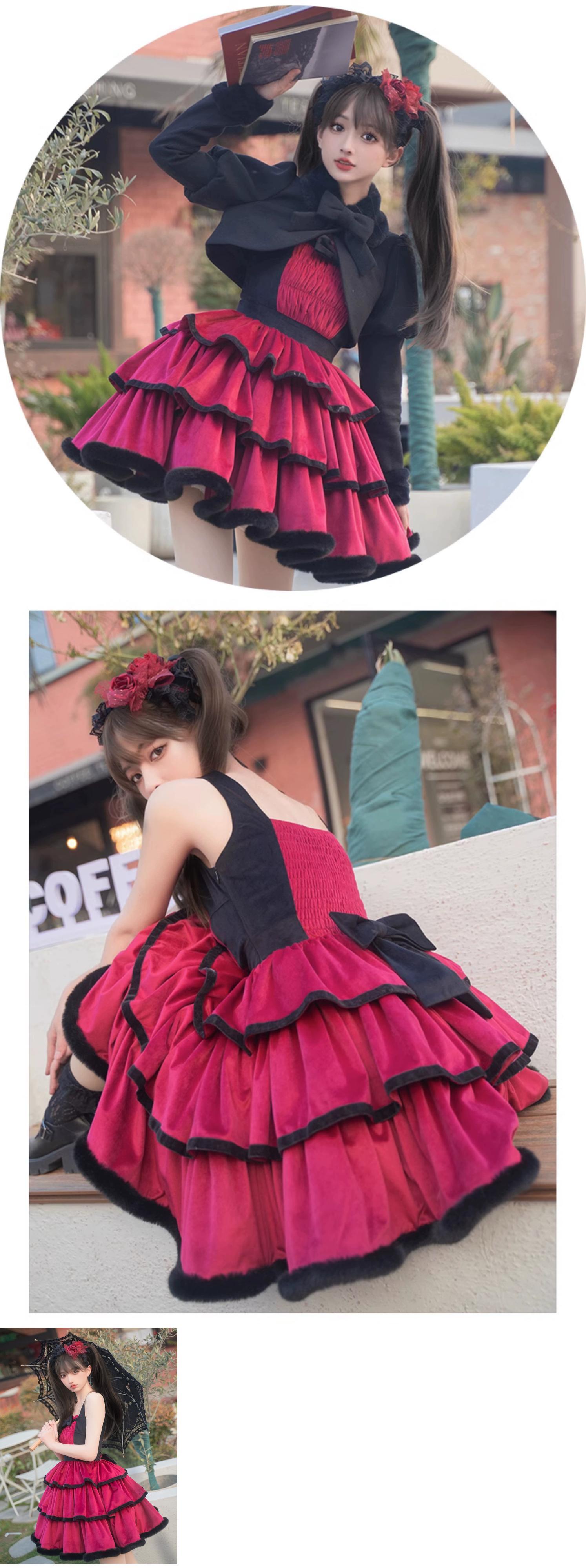 【Lilith JSK】withpujiオリジナルデザイン ゴシックダーク遊び心あるセクシーベルベット三段ケーキスカート puji87078505878