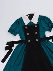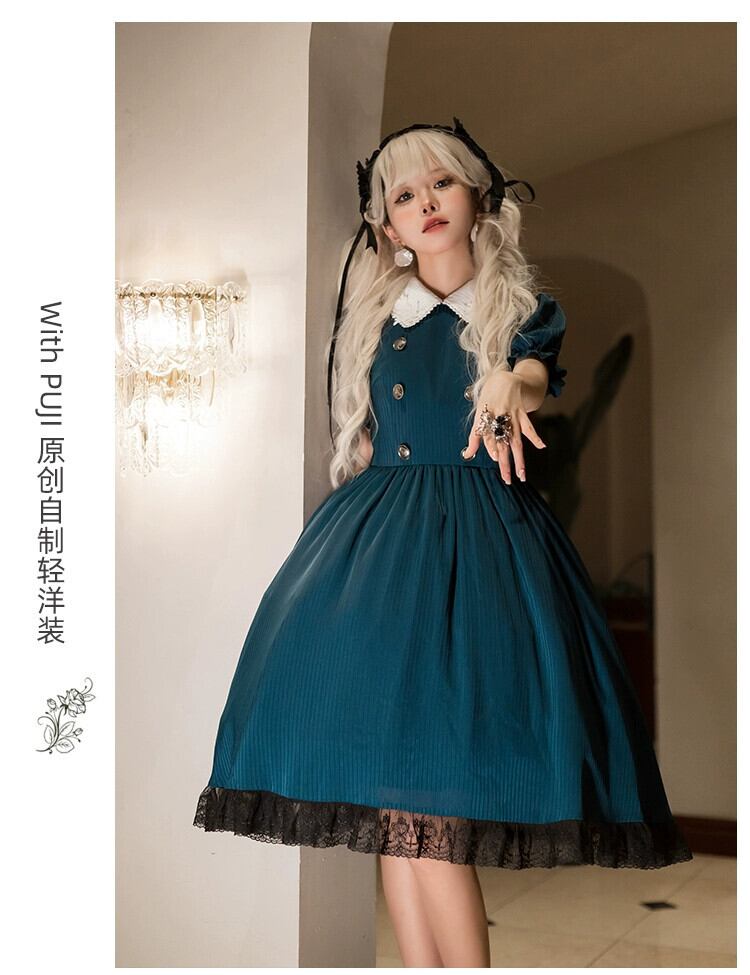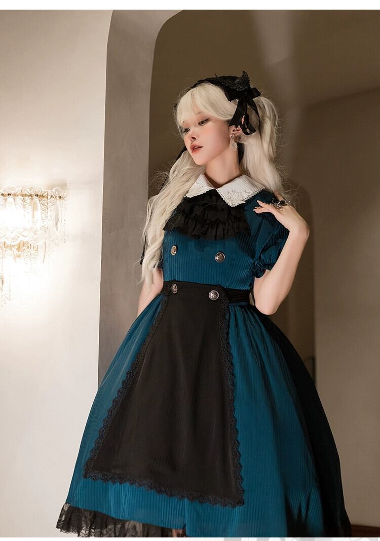 【異世界執事OP】 withpujiオリジナルデザイン ゴシックアップリケ 花襟エプロン 取り外し可能サマースカート ロリータ 夏物 フラワーデザイン puji94272312490